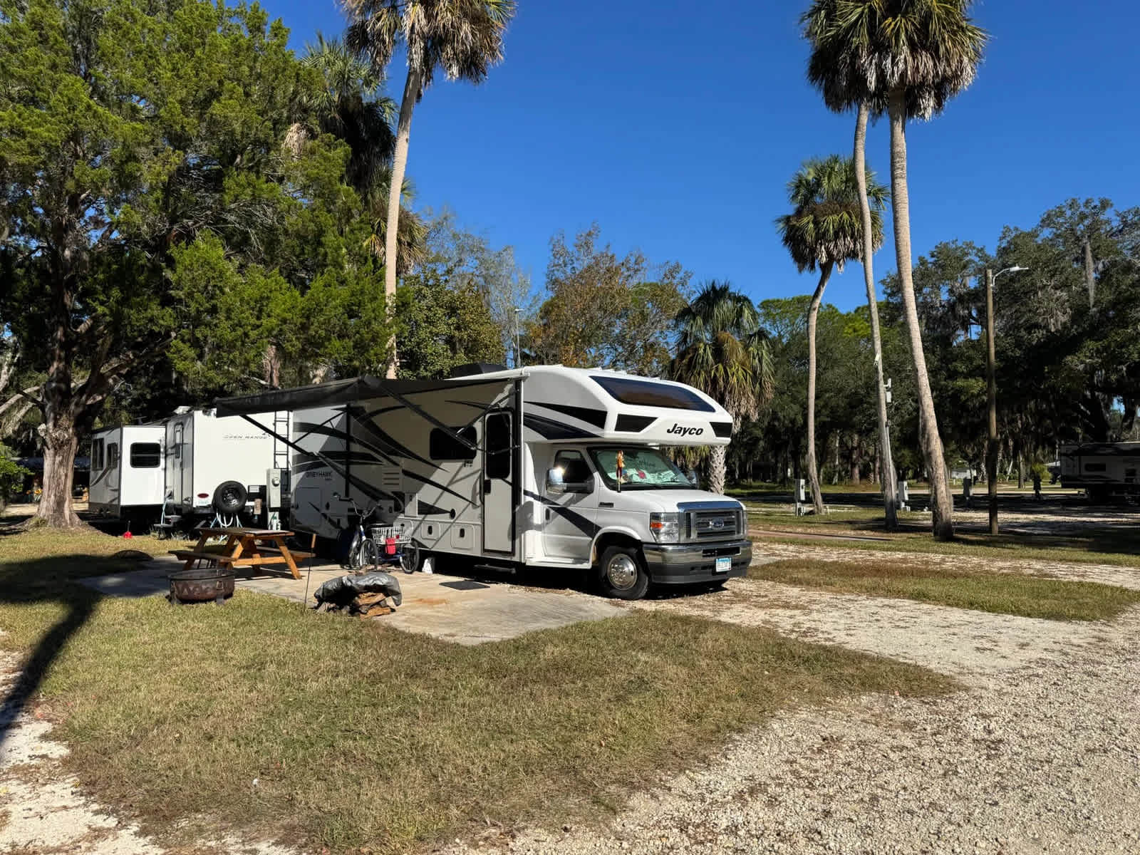 Nestled where the Withlacoochee River meets the Gulf, Old Florida RV Resort & Yacht Club offers an authentic slice of Old Florida living. Our waterfront property combines comfort and adventure with 30 shaded RV sites, a deep-water marina and boat ramp, a tiki bar and package store, and on-site bait, fuel, and supplies. Whether you’re here to camp, fish, boat, or just relax, you’ll love the easygoing atmosphere, friendly faces, and unforgettable sunsets over the river. Our riverfront RV resort blends comfort, adventure, and community. From full-service RV hookups to our deep-water marina, you’ll find everything you need for a true Nature Coast experience. • 30 full-hookup RV sites (30/50 amp, water, sewer, Wi-Fi) • 30 deep-water boat slips with Gulf access • Concrete deep-water boat ramp — easy launch for vessels of all sizes • Fuel dock, live bait, ice, beer, and snacks • Tiki bar and package store with live music and riverfront seating • Dump station, restrooms, and pet-friendly grounds • Walking distance to all amenities Our deep-water marina and boat ramp make launching effortless — whether you’re heading out to fish, scallop, or explore Florida’s Gulf Coast. With 30 slips, a concrete launch, and ethanol-free fuel, Old Florida RV Resort is your ideal boating base.