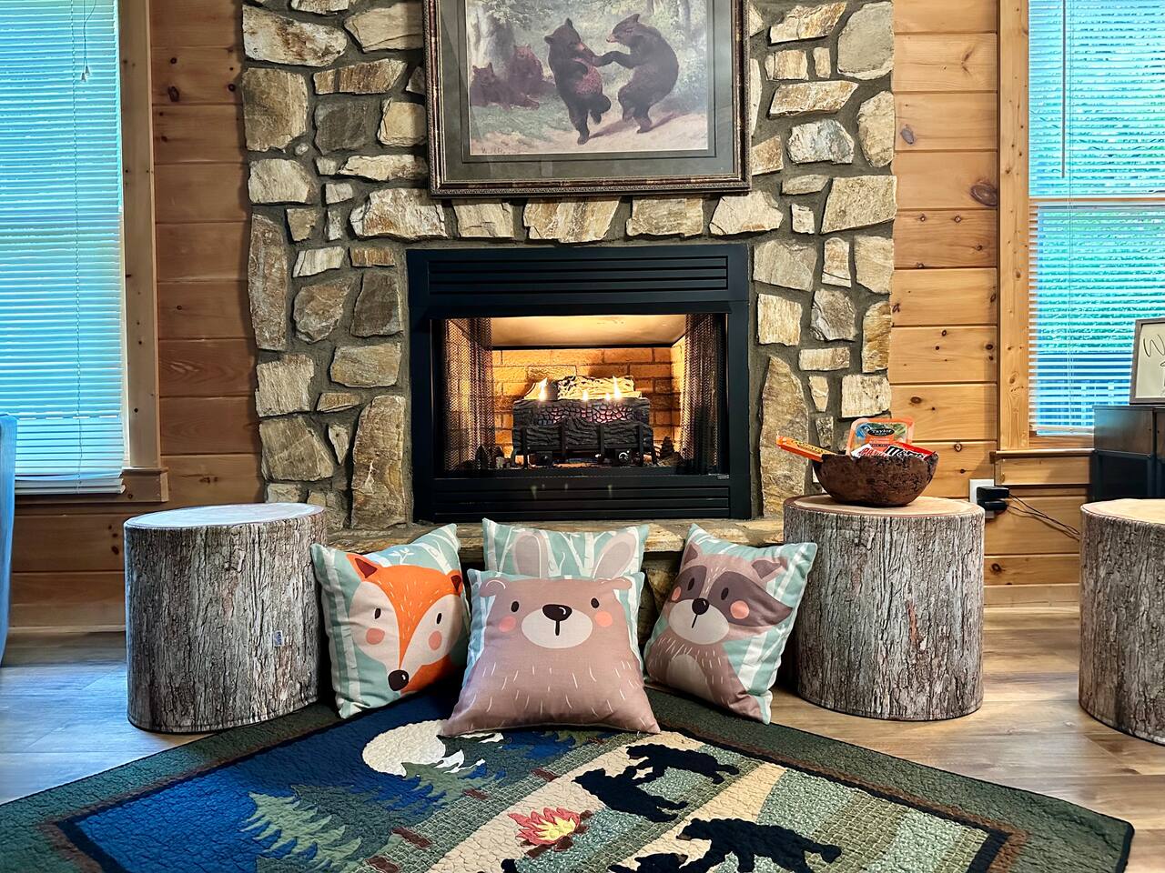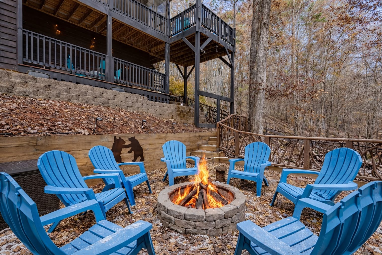 WHY GUESTS LOVE IT 1. Cleanliness ("The house was exceptionally clean and had all the comforts of home.") 2. Family-Friendly ("Some places say they cater to pets and families - but this home really does!") 3. Outdoor Areas ("We especially loved the extra space, privacy, setting, and many outdoor sitting areas.") 4. Hospitality ("...we instantly felt welcomed to enjoy the property.") 5. Comfort ("All bedrooms and equally beautiful and comfortable." EXPLORE NEARBY - All paved roads to access the cabin, including a paved driveway - Located in a gated community with resort amenities - Walk (¼ mi) → Fish Trap Park - Walk (½ mi) → Riverside Pool - 12 mins → downtown Ellijay - 12 mins → downtown E.Ellijay - 28 mins → downtown BRidge RESORT NEIGHBORHOOD - Located within the Coosawattee River Resort, enjoy the amenities with the peace of mind of a gated community. Coosawattee River Resort boasts: 1. 5,500+ acres of protected mountain and river terrain 2. Two outdoor pools (open Memorial Day-Labor Day) - Foxhound Pool 11am-7pm, small and serene, 186 Foxhound Dr. - Riverside Pool 8am-7pm, larger with kiddie pool, 545 Ogden Dr. 3. A recreation center (open year-round) 6am-8pm, 126 Mango Ln, with: - Heated, Junior Olympic-sized indoor pool - heated kiddie pool - Fitness Center with free-weights, treadmills, ellipticals, stationary bikes, weight machines, and rowing machines - Arcade with games, pool tables, and air hockey - Satellite TV & WiFi 6. Playgrounds, swings, and outdoor recreation 7. Fishing spots - Beaver Lake Fishing Pond (no fishing license required) on Beaver Lake Dr - Canoe Park (fishing license required) 3919 Newport Rd - North Park (no fishing license required) 208 Edgewater 8. Walking and hiking trails, including six nature parks 9. Picnic areas, pavilions, and bridges - East Park, 449 Cherokee Trl 10. Outdoor games: ping-pong tables, basketball, tennis, and pickle ball courts, and an 18 hole mini-golf course 11. Gated entrances with live guards 12. Fish Trap Park (about one quarter of a mile walk, 491 Zeblin Rd) - Camping area with tent and RV hookups - Playgrounds with swings - Large pavilion - Restrooms & water availability - Charcoal grills - Fire rings - Swinging suspension bridge over a pond, which connects the camping with Riverside PoolEscape to The Dancing Bear, a cozy 3-story mountain cabin made for families, groups, and multi-generational getaways. Relax on multiple decks, gather around the fire pit, grill under the trees, or unwind in the fully fenced backyard. Inside, enjoy two living spaces, a kids’ play loft, and a game room packed with arcade and board games. With a main-level bedroom and plenty of space to spread out, everyone stays comfortable. Located in Coosawattee River Resort with access to pools, trails, river spots, and more. LOFTED TOP LEVEL - Primary bedroom suite: King sized bed, smart TV, attached full bathroom - Primary bathroom ensuite with walk-in shower - Loft bedroom with 2 custom built-in twin beds, each with their own smart TV, & hangout/play area with beanbag chairs MAIN LEVEL (no stairs required) - Bedroom 2: Queen bed with smart TV *ideal for those wanting to limit stair usage - Bathroom 2: with tub/shower combo - Living room: smart TV, leather couches, & gas fireplace - Dining room with table for 8 - Kitchen with cooking and dining essentials, including a dishwasher, ice-maker, toaster, blender, and microwave - Full-sized laundry, with ironing board and iron - Deck and screened-in porch access (with outdoor living and dining) ENTERTAINING LOWER LEVEL - Bedroom 3: Queen bed, smart TV - Half Bathroom - Second living room: leather sofa, smart TV, game/card table - Game room with Foosball, skee-ball, magnetic dart board, and full-sized PacMan arcade game SOAK IN THE OUTDOORS - Covered deck with outdoor smart TV - Screened-in deck overlooking the backyard with bistro set - Open deck with charcoal grill and seating for 6 - Hanging patio swing - Hammock and knotted rope path - Fire pit with seating for 8 - Shrouded in trees, providing privacy and beautiful surroundings - Neighborhood features Coosawattee River access, ponds, trails, and lush landscape BRING THE WHOLE FAMILY - Main floor bedroom, bathroom, & laundry - High chair - Pack-N-Play - Child safety gates - Built-in bunk cubbies with personal TVs - Kids loft with books, games, bean bag chairs, and a desk - Blackout window treatments - Bathtub - Kid-friendly dinnerware - Fully fenced yard - 2 Living rooms - Game room - Tons of community amenities, games, sports, and entertainment