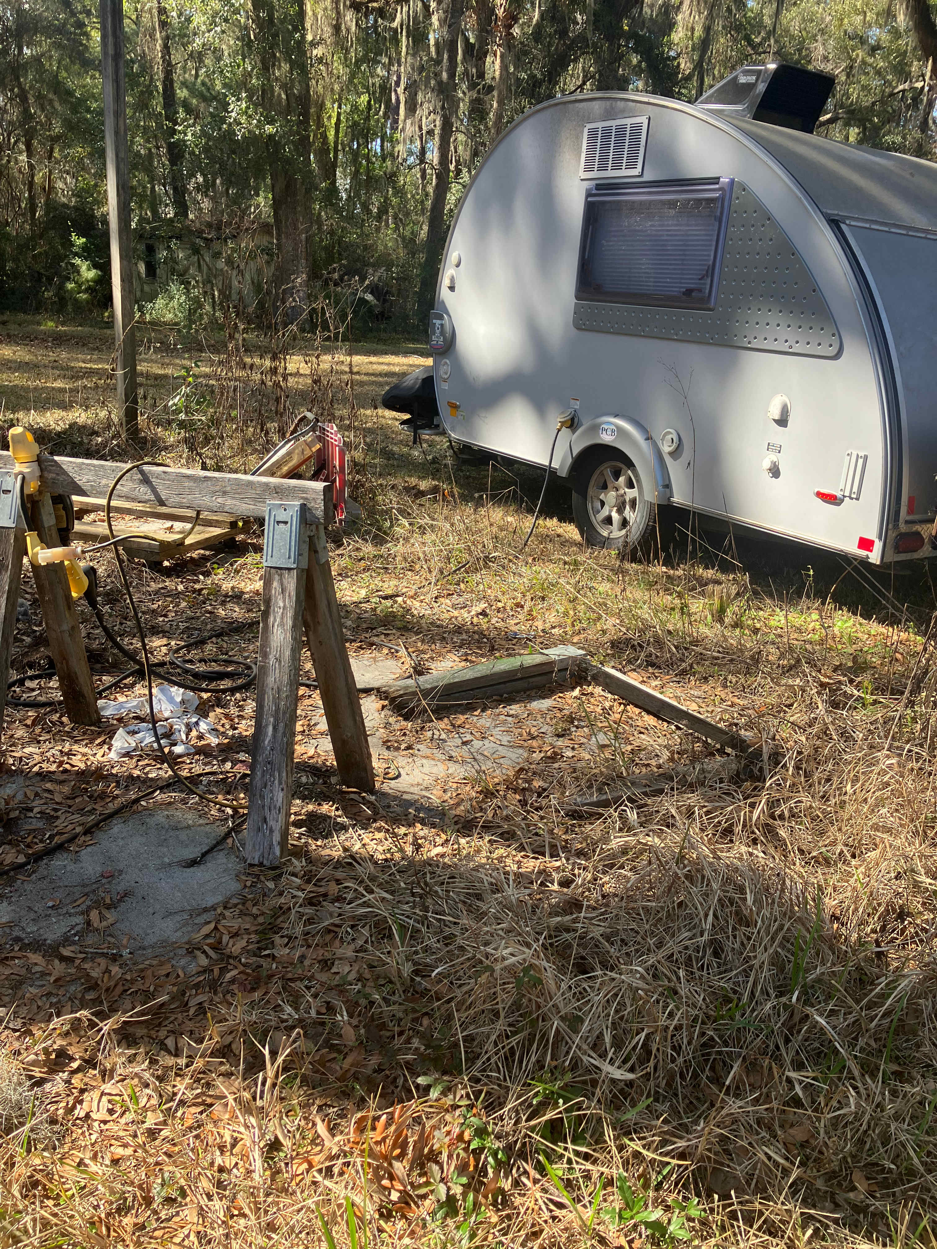 10 minutes from downtown Savannah. Secluded and quiet. Deepwater boat ramp across the street. State park and large public boat ramp within 5 miles. Ocean beach about 45 minutes away. Plenty of history and sites for easy day tripping. Grocery and pharmacy in close proximity also 3 major hospitals. Great weather (summer's a little hot).Dry camping in the back 40. Pitch a tent, pull in your van, hook-up your solar, have at it. Or park in my powered spot with 15 amp and water. All areas are level with minimum adjustments needed. I do not provide any amenities for the back 40, but the grass is cut. All areas are very secluded and pets are welcome.