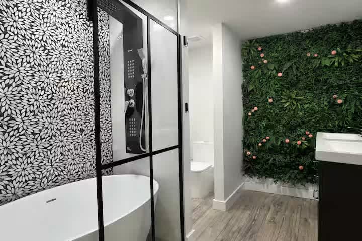 WELCOMING ENTRY - ChargePoint Level 2 EV charger (FREE) - Detailed, step by step check-in directions - Designated, off-street parking for 2 cars - Lighted parking and pathway with covered entry - Smart locks for convenient & secure access - Custom guidebook with local recommendations SPACIOUS ENSUITES PRIMARY BEDROOM 1 - Canopy-style king bed with memory foam mattress - Side tables and lamps with USB ports for convenience - 55” smart TV with streaming channels - Walk-in closet - Mini-split AC/heat with independent room control - PRIMARY BATHROOM 1: soaker tub, shower panel with extendable wand, double-sink vanity, and separate water closet PRIMARY BEDROOM 2 - King bed with hybrid mattress - Side tables and lamps with USB ports and outlets for convenience - 55” Smart TV with streaming channels - Mini-split AC/heat with independent room control - Dedicated office desk with: color printer, rolling office chair, and Windows laptop - PRIMARY BATHROOM 2: walk-in shower with shower panel and extendable wand ENTERTAIN THE WHOLE FAMILY GAME ROOM - Twin daybed and a twin trundle bed - Custom bar-height table with seating for 2 - 32" Smart TV with streaming channels - Retro game console with 2 wireless controllers, includes 20,000+ built-in games & 18 emulators - Take-One-Leave-One wall library - Giant Checkers, chess, and tic-tac-toe - Board and card games LIVING ROOM - Leather sectional - 60” Smart TV with streaming channels - Nintendo Wii game console with: 4 controllers, 4 nunchucks, Super Mario Bros, Jenny Craig workout, & WiiPlay STOCKED KITCHEN/DINING/LAUNDRY - Cooking and dining essentials - Stainless steel appliances, including: a flat-top range, dishwasher, ice maker, microwave, air fryer, toaster, and toaster oven - Butler's pantry with a coffee bar, featuring a dual K-cup and drip coffee maker - Granite countertops - Dining table with seating for 4 - Kids dining table & 2 small chairs - Full sized washer and gas dryer IDEAL FOR TRAVELING PROFESSIONALS - Office space inside of Master Bedroom 2: desk, rolling office chair, color printer and Windows laptop - Highspeed WiFi - Iron & ironing board FAMILY & PET FRIENDLY
