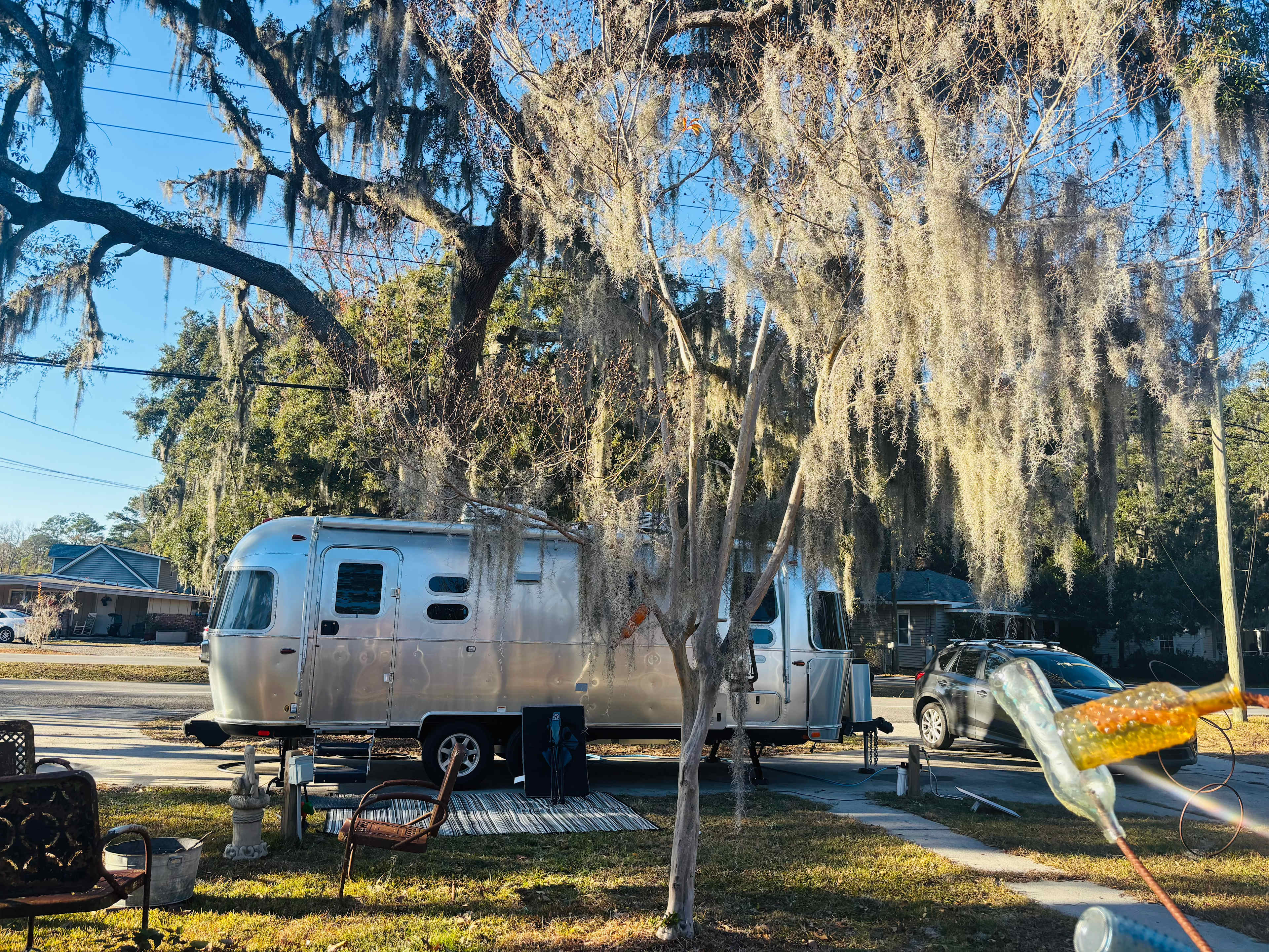 Lovely RV/van camping site with sewer hook up, water and electrical hook ups (30 amp). Outdoor shower with hot water available in back yard. Just 8 miles from the heart of downtown Savannah located near the marshlands in inter coastal waterway. A half mile walk to the Wyld dock bar. This a great place to call home for a night or more.