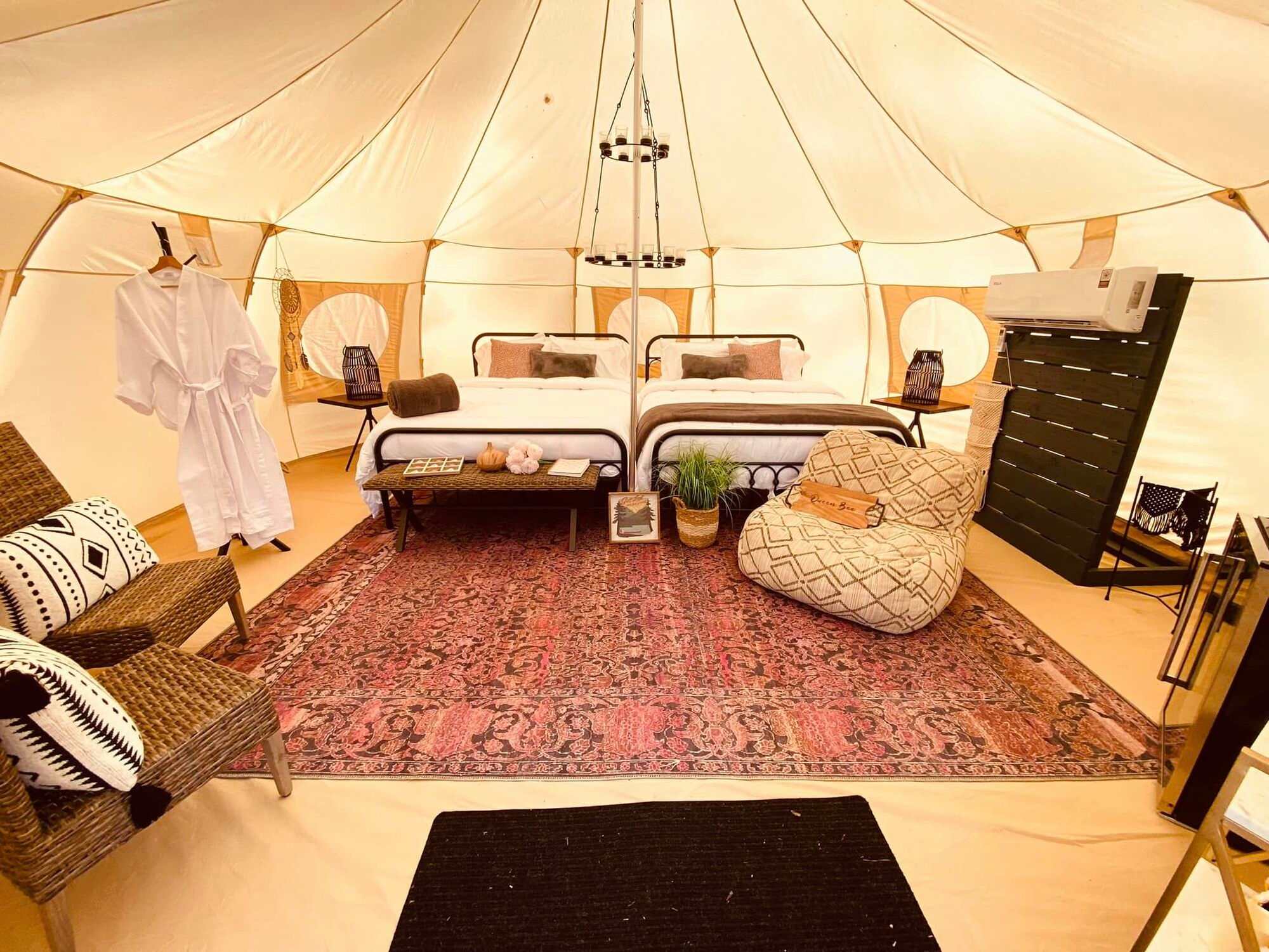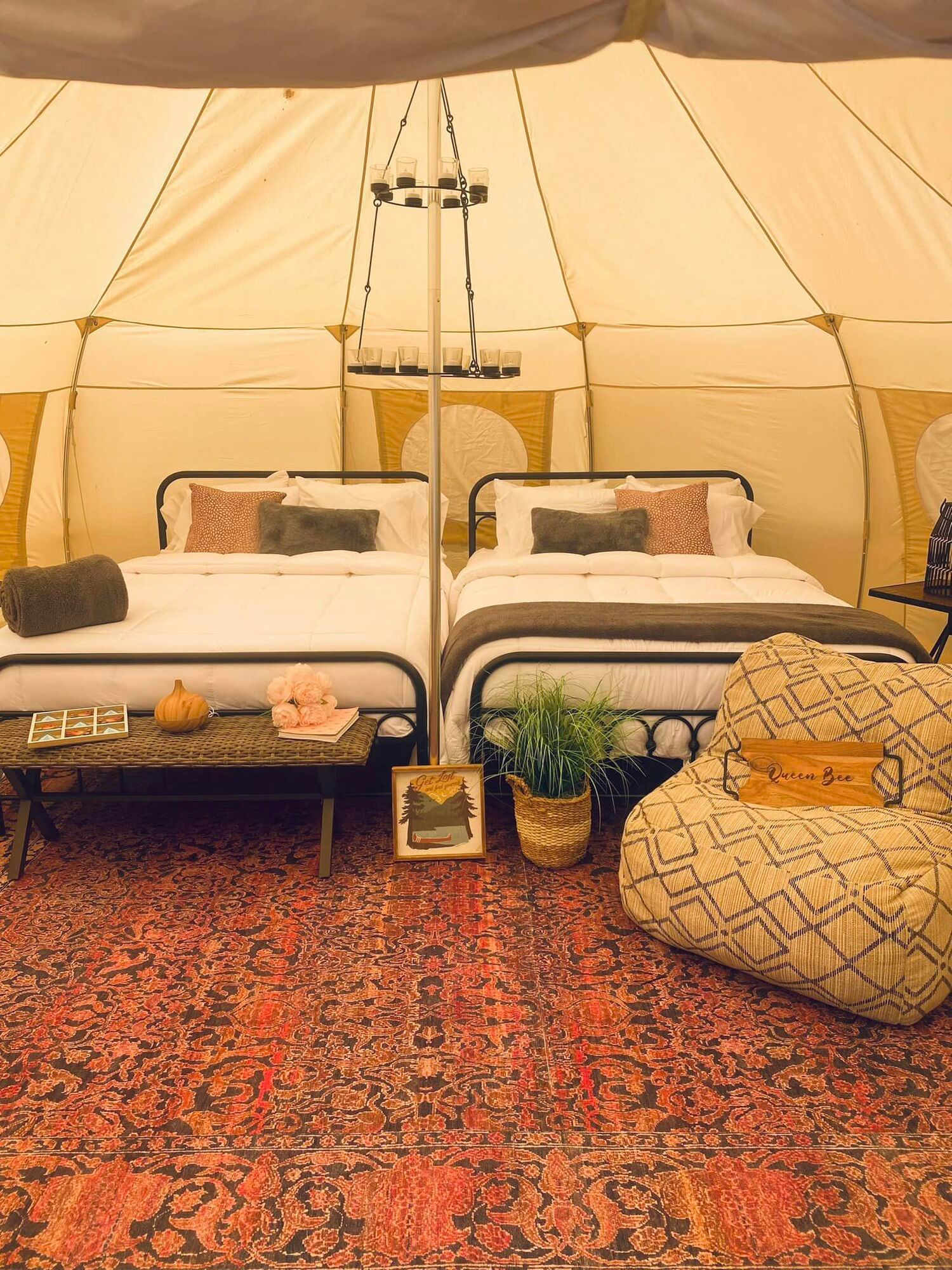 The newest trend of glamping, short for glamourous camping has redefined roughing it. Let the stars be your nightlight as you fall asleep listening to the sound of crickets serenading you. In the morning you wake up warm and cozy in your luxury comfort bed. At Untamed Honey Glampsites, you can have both. Embrace nature without giving up the comforts of home. Our hive consists of six unique luxury Luna Bell Tents nestled among the Georgia pines on the tranquil shores of ClarksHill Lake in historic Lincoln County. You will have all the modern conveniences and amenities mixed with the simplicity and peacefulness of the great outdoors. Globally, glamping is exploding, and we are committed to providing you with an unrivaled experience. With a variety of different sleeping accommodations, all with their own unique personalities, we know you will find the perfect fit for you! Whether you are reuniting with your best friends, reconnecting with family or having a romantic getaway, we can’t wait to help you plan a beautiful escape. We offer a boutique style glamping experience.