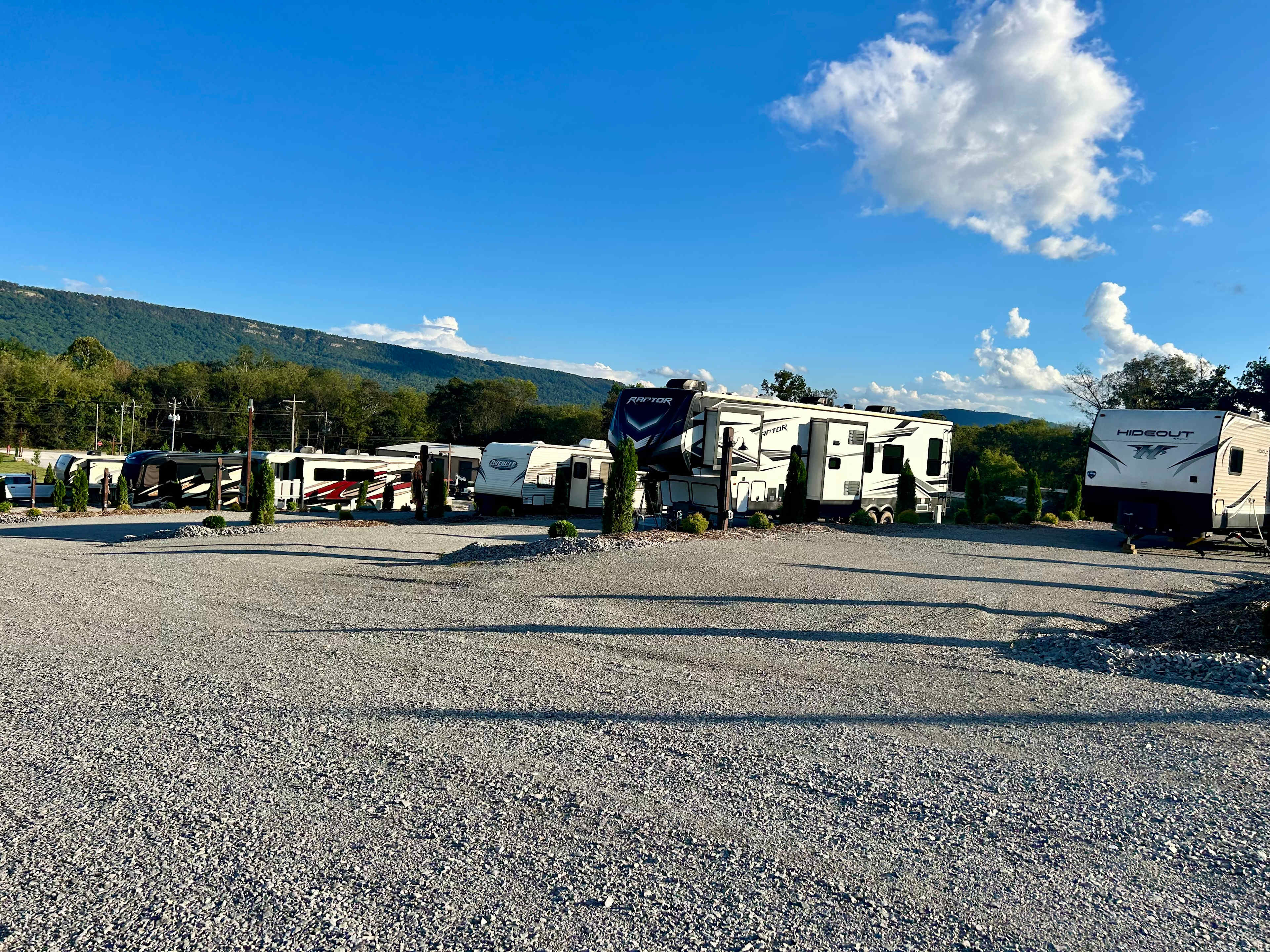 Our campground features: 20 spacious, full-hookup sites, ideal for RVs of all sizes A scenic loop layout with easy-to-access pull-throughs and back-in sites Complimentary Wi-Fi and garbage service. Valley View is close to Chattanooga, Tennessee. Located nearby popular attractions such as Cloudland Canyon, Rock City, and Ruby Falls and the lookout mountain Incline Railway. Valley View is great for weekend adventurers, traveling workers, and long-term guests—especially linemen and contractors looking for a comfortable and convenient place. Each site offers a unique view of local hang gliders who often launch nearby and soar overhead. It’s a favorite for guests who enjoy watching the colorful gliders in flight. PLEASE NOTE: Our campground is conveniently located close to the interstate for easy access and travel. You may hear some highway and occasional train noise during your stay. NO bathhouse on premises