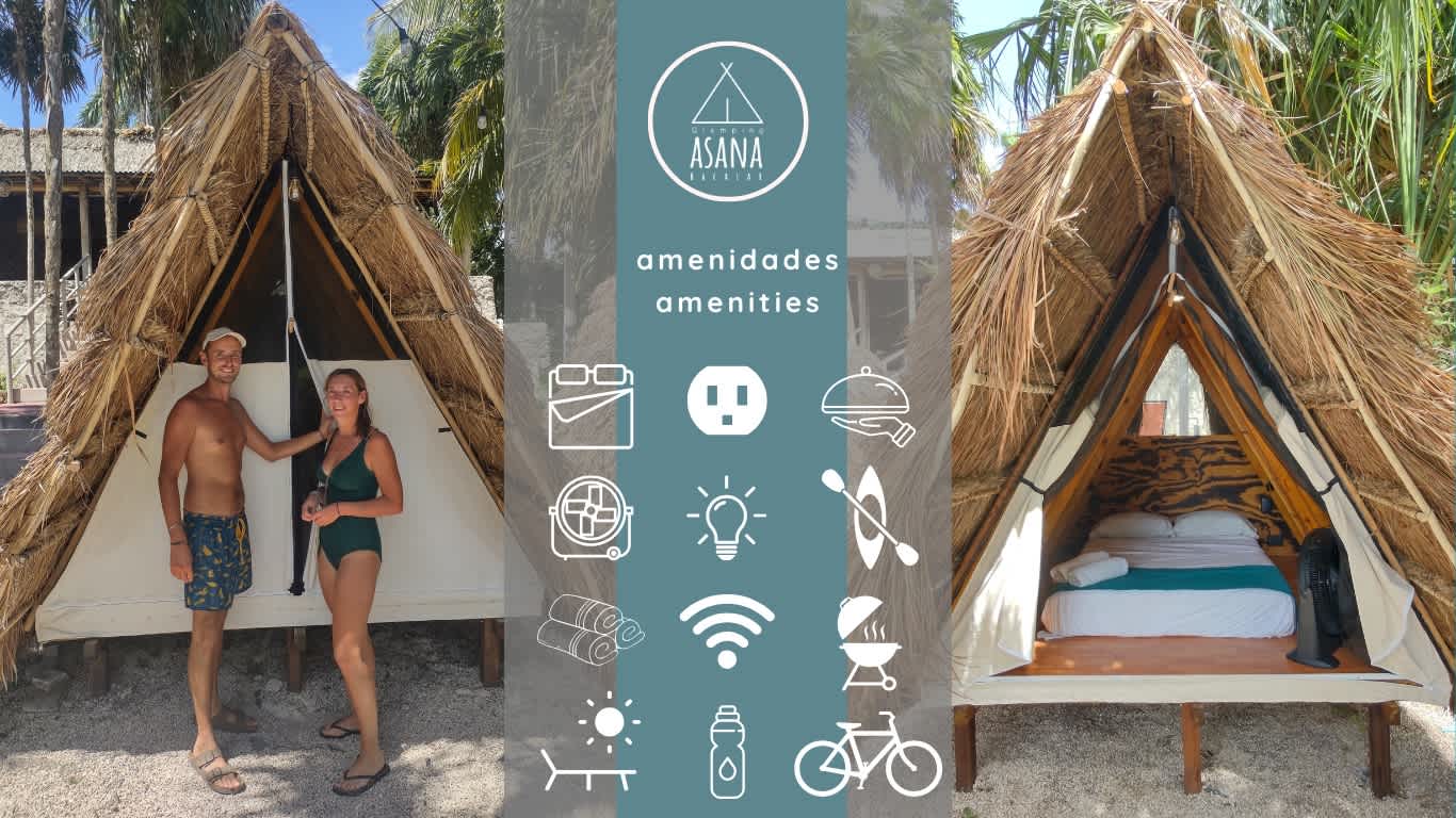 **ASANA Bacalar - Your Oasis at the Lagoon of Seven Colors** Welcome to **ASANA Bacalar**! A space designed for travelers seeking a connection with nature, comfort, and tranquility in a unique setting. We are located in the heart of Bacalar, right on the shores of the famous **Lagoon of Seven Colors**, where we offer an unforgettable glamping experience. **Accommodation Options:** - **Private cabin with lagoon view (includes free kayak)** - **Bed in a mixed dormitory-style hostel** **Services Included in Your Stay:** - **Homemade breakfast served daily** - **Free bicycles** to explore Bacalar and its surroundings - **Wi-Fi in common areas** - **Shared kitchen available for guests** - **Relaxation area and grill on the dock** - **Daily yoga classes** to balance body and mind **Activities and Experiences:** - **Free kayak for private cabin guests** - **Kayak rental available for hostel guests (200 MXN per day)** - **Boat tour – every day except Wednesday**, departing directly from our dock to explore Bacalar's most iconic spots: - Pirate Channel - Black Cenote - Emerald Cenote - Bird Island - Hidden Bay - **Common areas to relax, socialize, and enjoy nature** **Check-in and Check-out Times:** - **Check-in:** 3:00 PM - **Check-out:** 12:00 PM **Ideal Location:** We are in a privileged location with easy access to restaurants, markets, and points of interest in Bacalar. If you are looking for a place to relax and enjoy the beauty of the lagoon without worries, **ASANA Bacalar is your best choice.****ASANA Bacalar - Your Oasis at the Lagoon of Seven Colors** Welcome to **ASANA Bacalar**! A space designed for travelers seeking a connection with nature, comfort, and tranquility in a unique setting. We are located in the heart of Bacalar, right on the shores of the famous **Lagoon of Seven Colors**, where we offer an unforgettable glamping experience. **Accommodation Options:** - **Private cabin with lagoon view (includes free kayak)** - **Bed in a mixed dormitory-style hostel** **Services Included in Your Stay:** - **Homemade breakfast served daily** - **Free bicycles** to explore Bacalar and its surroundings - **Wi-Fi in common areas** - **Shared kitchen available for guests** - **Relaxation area and grill on the dock** - **Daily yoga classes** to balance body and mind **Activities and Experiences:** - **Free kayak for private cabin guests** - **Kayak rental available for hostel guests (200 MXN per day)** - **Boat tour – every day except Wednesday**, departing directly from our dock to explore Bacalar's most iconic spots: - Pirate Channel - Black Cenote - Emerald Cenote - Bird Island - Hidden Bay - **Common areas to relax, socialize, and enjoy nature** **Check-in and Check-out Times:** - **Check-in:** 3:00 PM - **Check-out:** 12:00 PM **Ideal Location:** We are in a privileged location with easy access to restaurants, markets, and points of interest in Bacalar. If you are looking for a place to relax and enjoy the beauty of the lagoon without worries, **ASANA Bacalar is your best choice.**