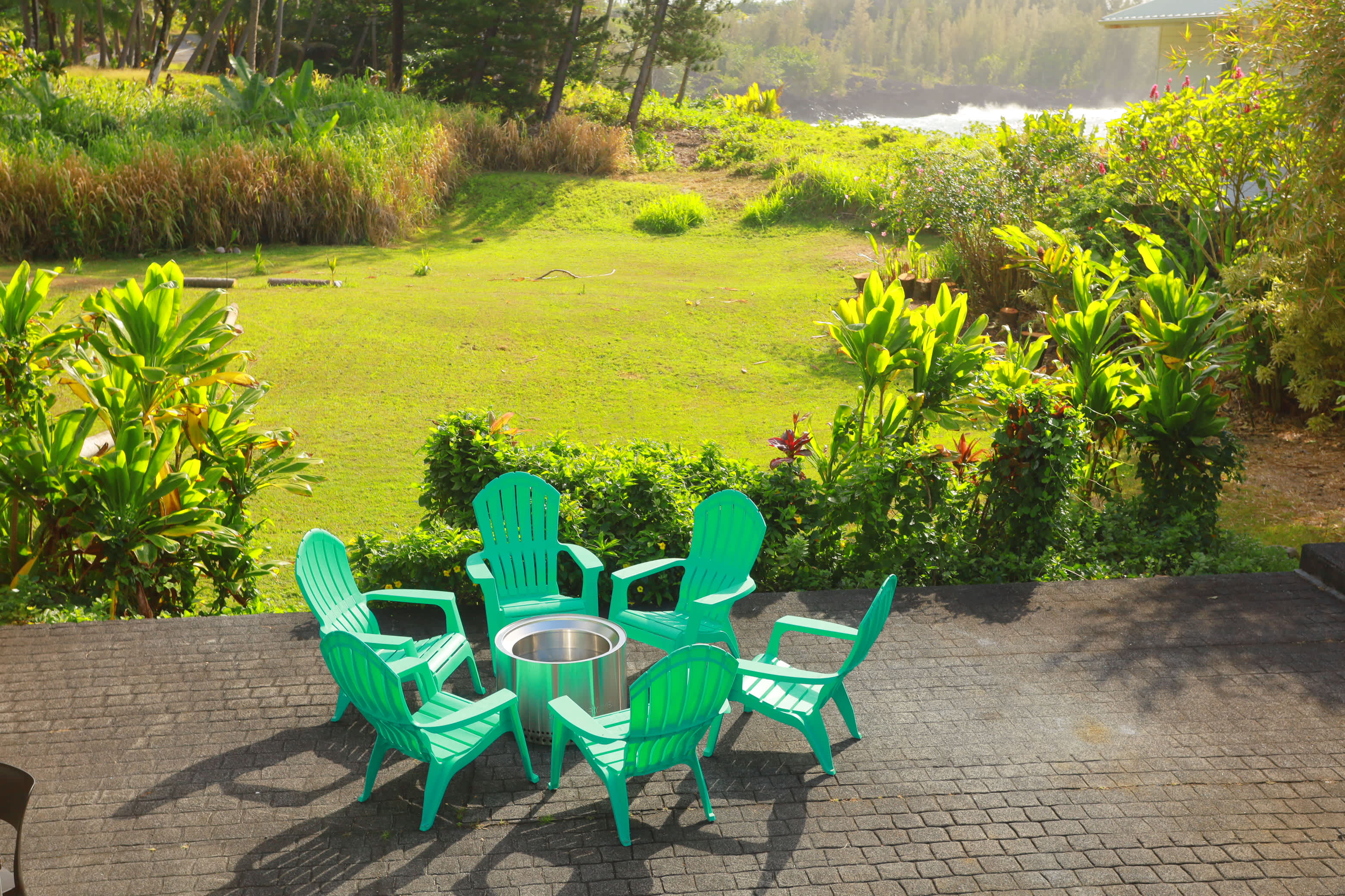 The ultimate eco-getaway for indoor-outdoor relaxation, dining, and sleeping, perfect for 1-2 couples or a family. Ocean views and crashing waves from wide-open bifold doors. Walk nextdoor to Kehena black sand beach, or drive the Red Road to Hawaii's only hot springs at Pohoiki. A swim spa is a plunge pool or hot tub; a firepit brings friends and family together under starry skies. Experience Hawaii's "wild east" in Puna, live music and dance, Hilo waterfalls, and Hawaiian Volcanoes National Park.The ultimate eco-getaway for indoor-outdoor relaxation, dining and sleeping, perfect for 1-2 couples or a family. Ocean views and crashing waves from wide-open bifold doors. Walk nextdoor to Kehena black sand beach, or drive the Red Road to Hawaii's only hot springs at Pohoiki. Swim spa is a plunge pool or hot tub; firepit brings friends and family together under starry skies. Experience Hawaii's "wild east" in Puna, live music and dance, Hilo waterfalls, and Hawaiian Volcanoes National Park. The house is quintessential Hawaii, designed to be left open to the ocean breeze at most times. Bedding arrangement is as follows. Upstairs (master suite): - one king bed, made and ready to use - one full futon - additional queen bedding for futon stored sealed in the upstairs closet. Downstairs: - one king bed - one queen air mattress - twin-equivalent sofa - one queen convertible sofa outside on the back lanai, with bug net. For the adventurous. - additional queen bedding stored sealed in the downstairs closet. We officially allow a maximum of 8 guests, which is do-able using the air mattress and with two guests per available bed. All other bedding (twin sofa, lanai sofa) are unofficial, to be used only at guest discretion. The indoor dining table is set for 6 but can accommodate 8 with its pull-out leaf, and borrowing 2 chairs from the deck. Washer and dryer, additional towels and supplies, and beach toys (wakeboards, snorkeling, umbrellas) available to guests in the garage. 65" and 50" TVs in the living room and master bedroom, respectively. We do not have cable TV but provide Disney+, Hulu, ESPN+, and encourage guests to stream from their own accounts. The swim spa is usually set to 90 degrees, allowing for use for either swimming or as a hot tub. Please allow 4-5 hours for the hot tub to heat. To cool it, leave the cover open and run the fountain jets. Observe pool rules in the house and printed on the side of the tub. STVR-19-364071, NUC-19-1522