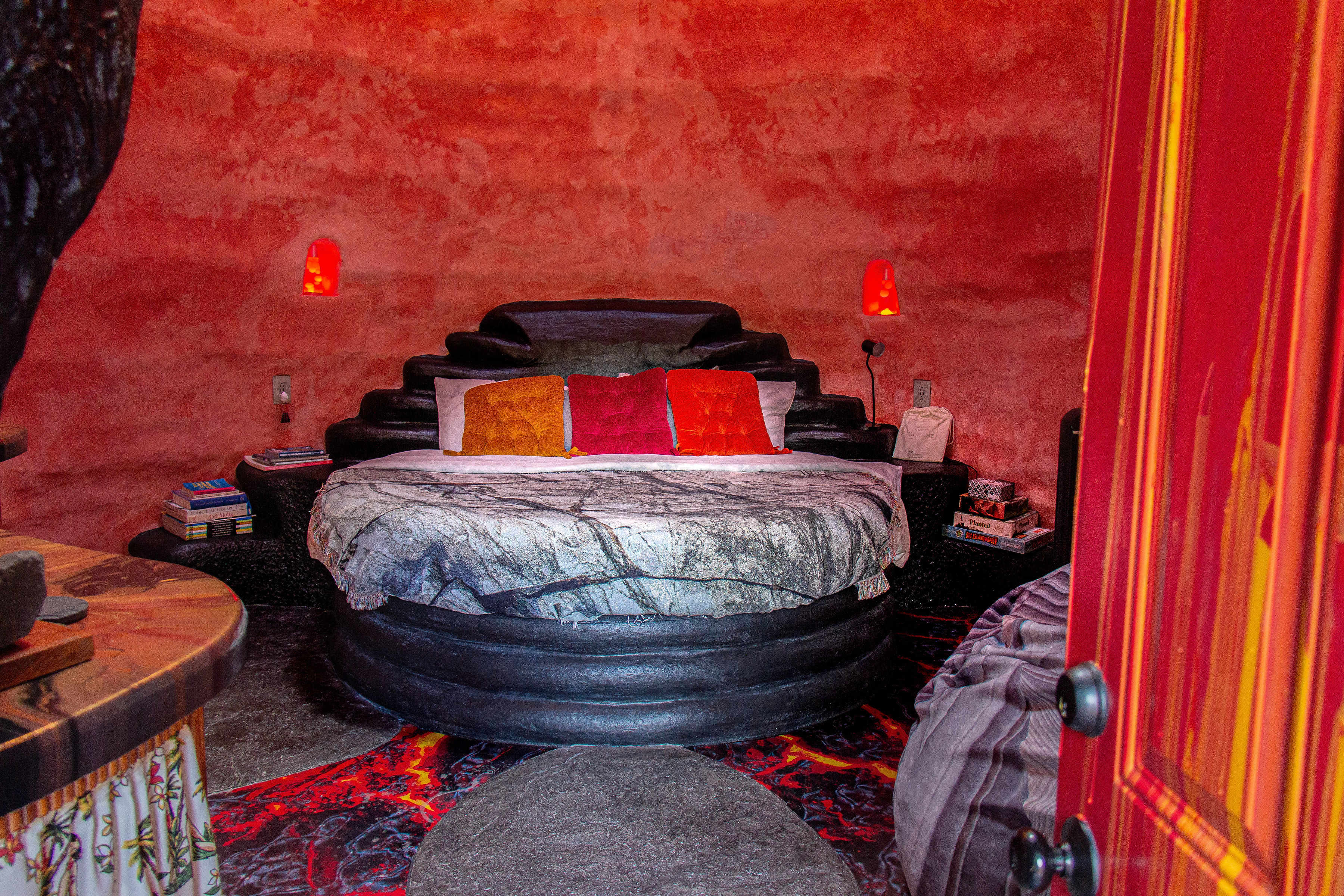 Don't let your adventure stop at the national park! Come experience living in a luxurious volcano dome home where you will live in synergy with the natural exquisite surroundings. The cinder we used to build the whole dome comes from the local query produced from big island's natural volcanic features. We promise you'll lava it! The space **Please read the full listing before booking*** Welcome to Inn a Volcano! Enter through the archway and be transported into a Volcano. With 25+ feet high ceilings and a skylight at the cherry top, the sunlight shines onto floor that is... lava. Looking hot, right? No worries because the 16 inch thick cindercrete walls keep things cool and regulated. And guess what? The dome doubles as a sound studio. Stand in the middle of the dome and hear the deep echo created by the cindercone shaped room. Cue the music! Waking up from snuggling the softest sheets in the cozy circle bed, you can brew your morning coffee or pick some hibiscus from the garden and make fresh tea. The bedroom was designed with relaxation and comfort in mind. This is a perfect place to unwind after a long day. Lava lamp niches set the mood at night and the coqui frogs will sing you to sleep as you stargaze through the skylight. The bathroom is a blissful calm contrast from the firey red walls and lava floor in the main room. Open the circle window and breath the fresh rainforest air above the custom made hand polished limestone bathtub. Light a candle and take a bath or use the rainfall shower head. Admire the jungle flora just outside of the bathroom window, full of vibrant colors and life. This property is fully off-the-grid with the electricity being powered by the sun and the rainwater being harvested from the house next door. We love to let people experience a luxury version of off-grid life, flushing toilet included. Everything in this volcano is custom-made. We spent the better part of 8 months trying to create the best luxury eco experience possible for all guests. We hope that you see the beauty in each detail we thought of just for you.