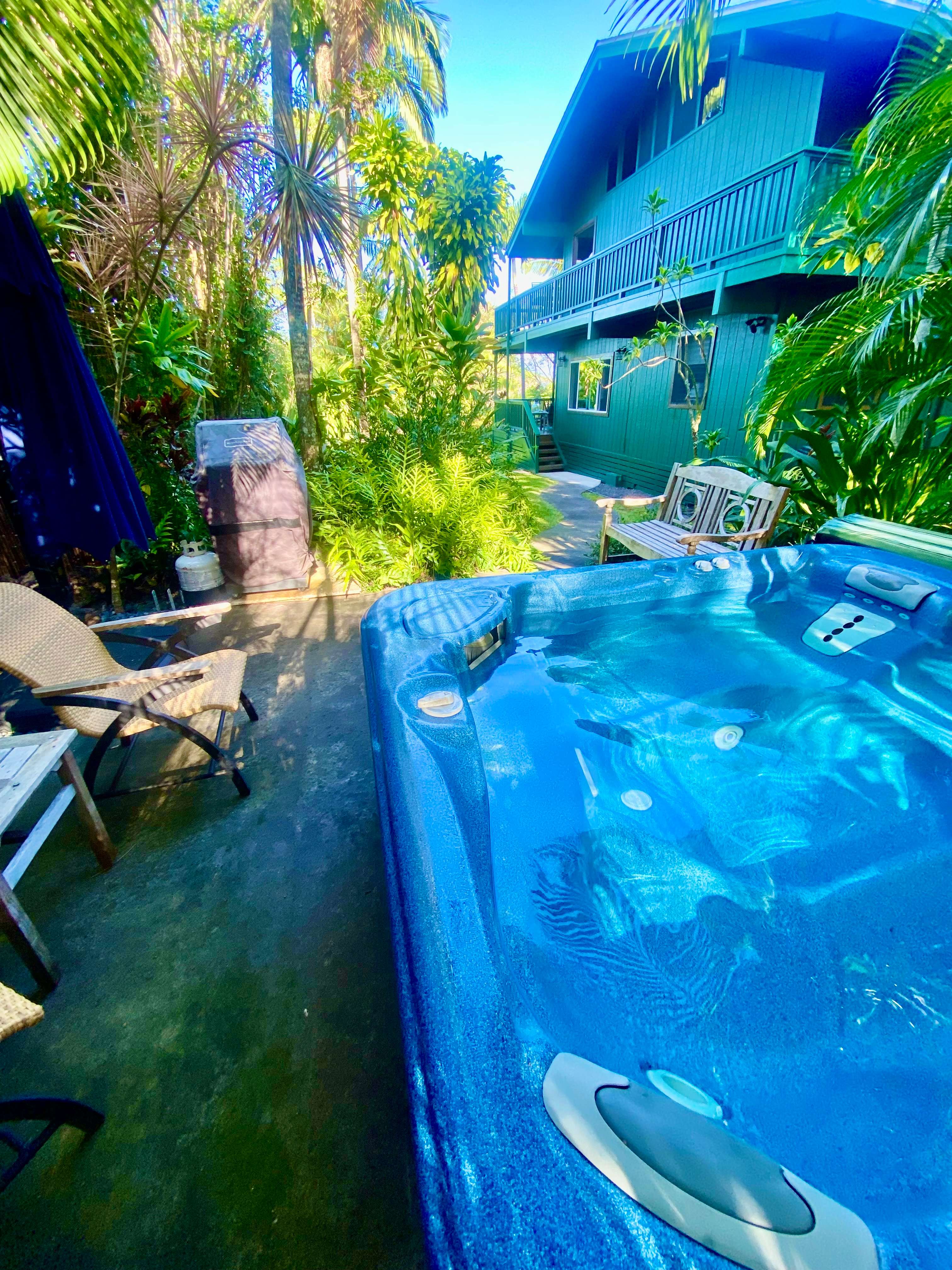 Once the gate closes behind you, you enter another world. Kona Palm Retreat is a private two-bedroom, one-bath sanctuary set within a lush tropical landscape featuring over 300 varieties of palms, flowering gardens, birdsong, and expansive lawns. Although located just 10 minutes from Kailua-Kona, the ocean, and the airport, the property feels peaceful, secluded, and far removed from everyday life. The grounds offer wide open lawns ideal for yoga, stretching, meditation, or simply grounding barefoot in the grass. Multiple private outdoor seating areas are tucked throughout the gardens, providing quiet spaces to read, reflect, or listen to nature. In the evenings, relax in the private tropical hot tub, enjoy the barbecue area under the stars, or gather on the large covered dining lanai surrounded by lush greenery, flowers, and gentle island breezes. Inside, the 2 bedroom 1 bathroom accommodation is designed to feel natural, comfortable, and welcoming. You’ll find a fully equipped kitchen, air-conditioning, high-speed internet, a smart TV, and thoughtful touches that make settling in easy. We provide shampoo, conditioner, body wash, and starter coffee so you can ease into your stay. For beach days and island exploring, we also include beach chairs, beach blankets, coolers, and snorkel masks and fins. Kona Palm Retreat is ideal for guests seeking privacy, nature, and calm — a true retreat that feels rustic in spirit yet comfortable in reality. It’s a place where mornings begin with birds and coffee on the lanai, days flow between exploration and rest, and nights end soaking under the stars. A genuine Hawaiian escape that feels remote, restorative, and deeply connected to the land — yet remains close to everything Kailua-Kona has to offer. We live in the upstairs portion of the property with our two dogs and two cats. The accommodation has been designed to be completely private with no shared spaces, gardens, private hot tub and barbecue area for your use only, You cannot see any other homes from the property and the entire property, including the hammocks under the coconut trees, expansive lawns and garden's are available for your use. We endeavor to provide a well appointed, comfortable, private Hawaiian experience at the Kona Palm Retreat.Welcome to Kona Palm Retreat — a lush, private tropical sanctuary on the slopes of Kailua-Kona. This serene two-bedroom, one-bath retreat is set within expansive botanical grounds featuring over 300 varieties of palms, flowering tropical plants, and wide open lawns. The property is secluded and peaceful, ideal for travelers seeking nature, relaxation, and connection — without sacrificing comfort. The grounds offer expansive grassy areas perfect for yoga, stretching, outdoor meditation, or simply enjoying the quiet, surrounded by birdsong, gentle breezes, and tropical fragrance. Multiple private outdoor seating areas are tucked throughout the gardens, allowing you to unwind with a book, morning coffee, or sunset drink. One of the highlights of Kona Palm Retreat is the private tropical hot tub and barbecue area, thoughtfully positioned for evening relaxation under the stars. Whether you’re soaking after a day at the beach or enjoying a relaxed dinner outdoors, the setting is tranquil and intimate. The home features a large covered dining lanai, surrounded by lush gardens and tropical foliage, creating a true indoor-outdoor living experience. This space is perfect for shared meals, quiet mornings, or evening conversations accompanied by the sounds of nature. Inside, the retreat is comfortable, clean, and well-appointed , with two bedrooms, one bathroom, a fully stocked kitchen, high speed Internet, comfortable living room, large, outdoor dining area on the lanai, the spaces is designed as a peaceful base for exploring Kona’s beaches, coffee farms, hiking trails, and snorkeling spots, while still feeling worlds away from crowds and traffic. Kona Palm Retreat is ideal for couples, friends, creatives, and nature-focused travelers looking for a private, lush, and restorative Hawaiian experience — a place to slow down, reconnect, and enjoy the beauty of the island.