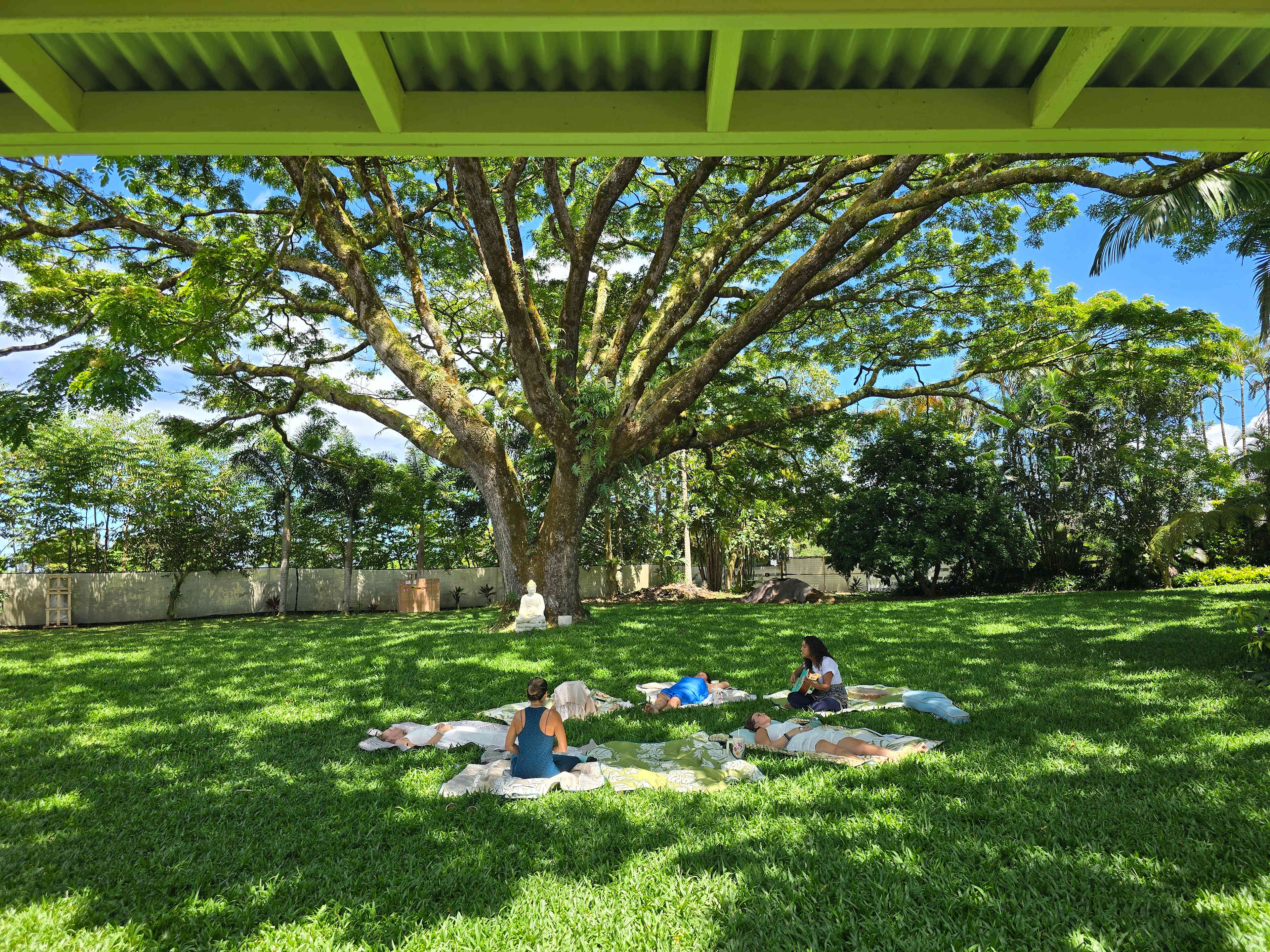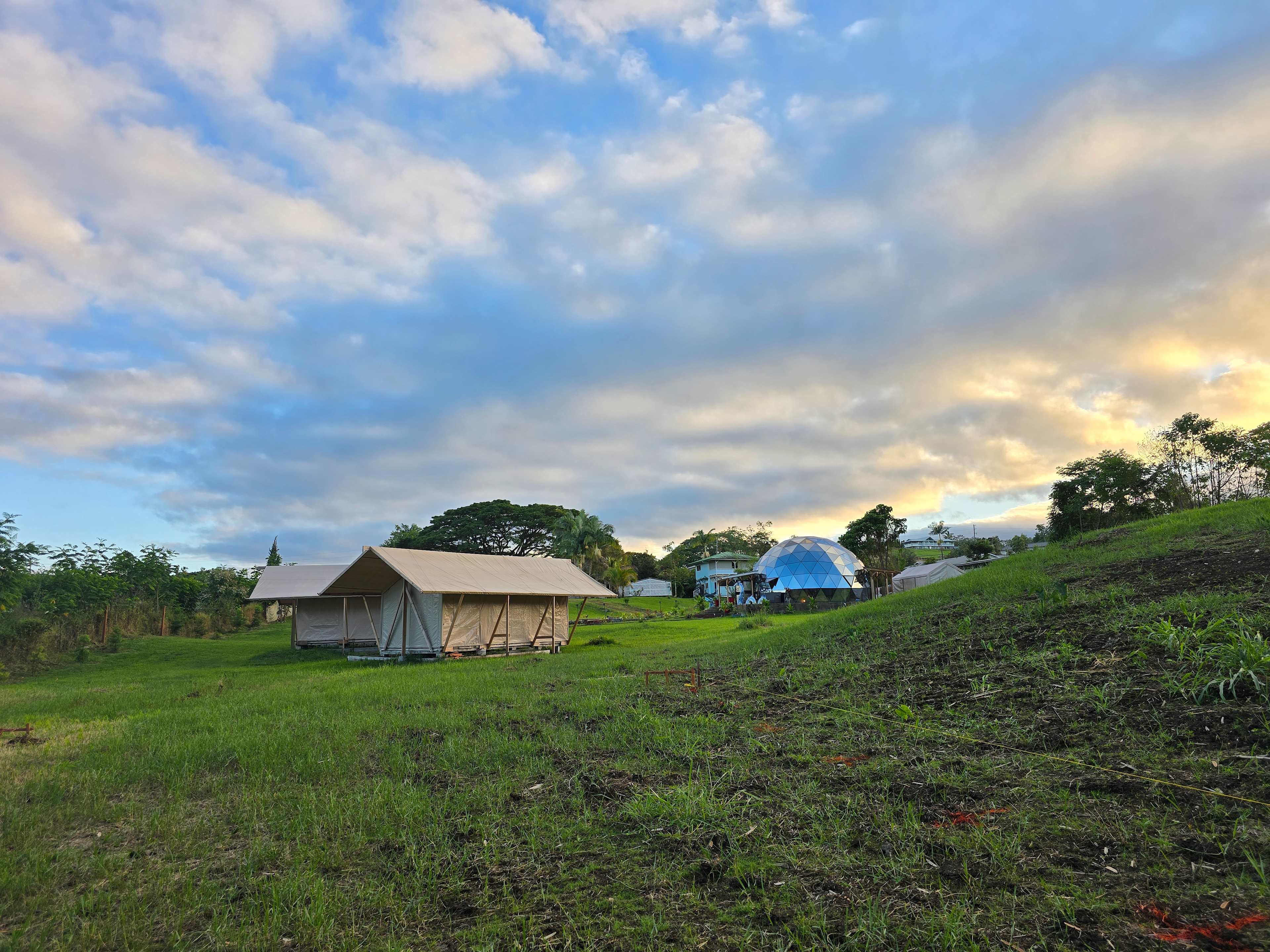 Farm Stay & Garden Sanctuary in Hilo, Hawaiʻi Welcome to Mu Garden Sanctuary, a lush 6-acre permaculture farm and garden sanctuary nestled in the rainforest of Hilo on the Big Island of Hawaiʻi. This is a peaceful, nature-immersed space where guests can slow down, reconnect with the land, and experience a more grounded way of living. Surrounded by tropical gardens, fruit trees, medicinal plants, and sacred spaces, Mu Garden offers a unique opportunity to stay close to nature while still being conveniently located near town. Guests are invited to enjoy the beauty of the land, explore the gardens, and experience the rhythms of a working farm dedicated to the philosophy of “food as medicine.”Simple Farm Stay in Hilo, Hawaiʻi Stay within the peaceful grounds of Mu Garden Sanctuary, a 6-acre permaculture farm and garden sanctuary in the lush rainforest of Hilo. Hale #1 offers a simple, nature-immersed experience for guests who enjoy being close to the land while still having essential comforts. 🛏️ What’s Included • 1 Queen bed + 1 Twin bed • Cooler for personal food items • Lantern lighting • Access to communal dining space • Shared working toilets • Private outdoor shower spaces • Access to Cobbin Sauna • Wifi/Electricity Access in the communal dinning area 🌺 The Experience Wake up to birds, fresh air, and the beauty of tropical gardens. Guests are welcome to enjoy the peaceful atmosphere of the land and shared garden spaces. ✨ Optional Add-Ons (Additional Fee) • Farm-fresh breakfast • Sound bath experiences • Frequency healing sessions 📍 Location Located just minutes from downtown Hilo, waterfalls, beaches, and about 45 minutes from Volcanoes National Park. 🌿 Good to Know This is a working farm environment with simple, off-grid style amenities. Ideal for guests seeking a quiet, nature-based stay.