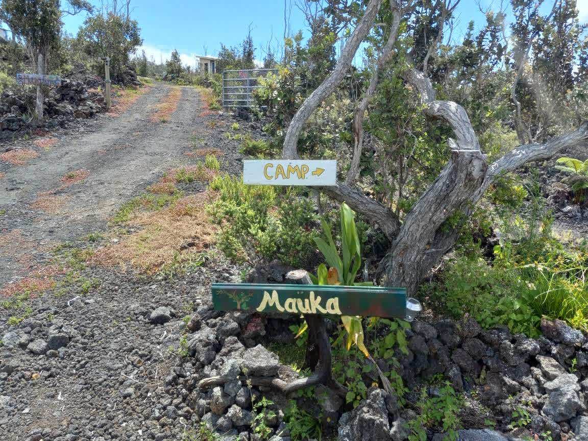Sleep under the stars on the slopes of the world’s largest active volcano, Mauna Loa. Located at 3700’ on a 250 year old lava flow, enjoy camping in a native forested lot that is accessible by 2WD vehicle. This is a great base location to enjoy activities on the south side of Big Island, including Hawai’i Volcanoes National Park, Papakolea (Green Sand Beach), Punalu’u (Black Sand Beach), and Ka Lae (South Point). Break up your island wide cruise and spend more time in scenic Ka’ū, one of the last bastions of old Hawai’i. Mutiny Farms is 100% off-grid. There is currently no power available at either site. You will need to bring flashlights and rechargeable battery packs if you require any portable power. The property is about a 15 minute drive to Ocean View town center, and about an hour to Hawai’i Volcanoes National Park. Ocean View is the only community between Captain Cook and Volcano with restaurants, grocery stores, and other amenities. There are dogs, cats, and peacocks living on the farm. There are a variety of native and food plants growing on the property. At this elevation, the climate can be quite chilly, so please come prepared for the weather. We are happy to provide guided adventures in your personal or rental vehicle, or provide information to enhance your adventure. Your booking helps us continue to improve the property, which is dedicated to food sustainability for the district of Ka’ū. Mahalo nui loa.Pitch a tent in a native forest amongst the ohia trees and other native Hawaiian plant species. Enjoy a small campfire in the designated fire ring. Some firewood is provided. There is a pit toilet and a flat tent spot, although due to the rocky terrain, sleep pads are highly recommended. The tent site is located about 200 ft away from the main house to provide privacy.