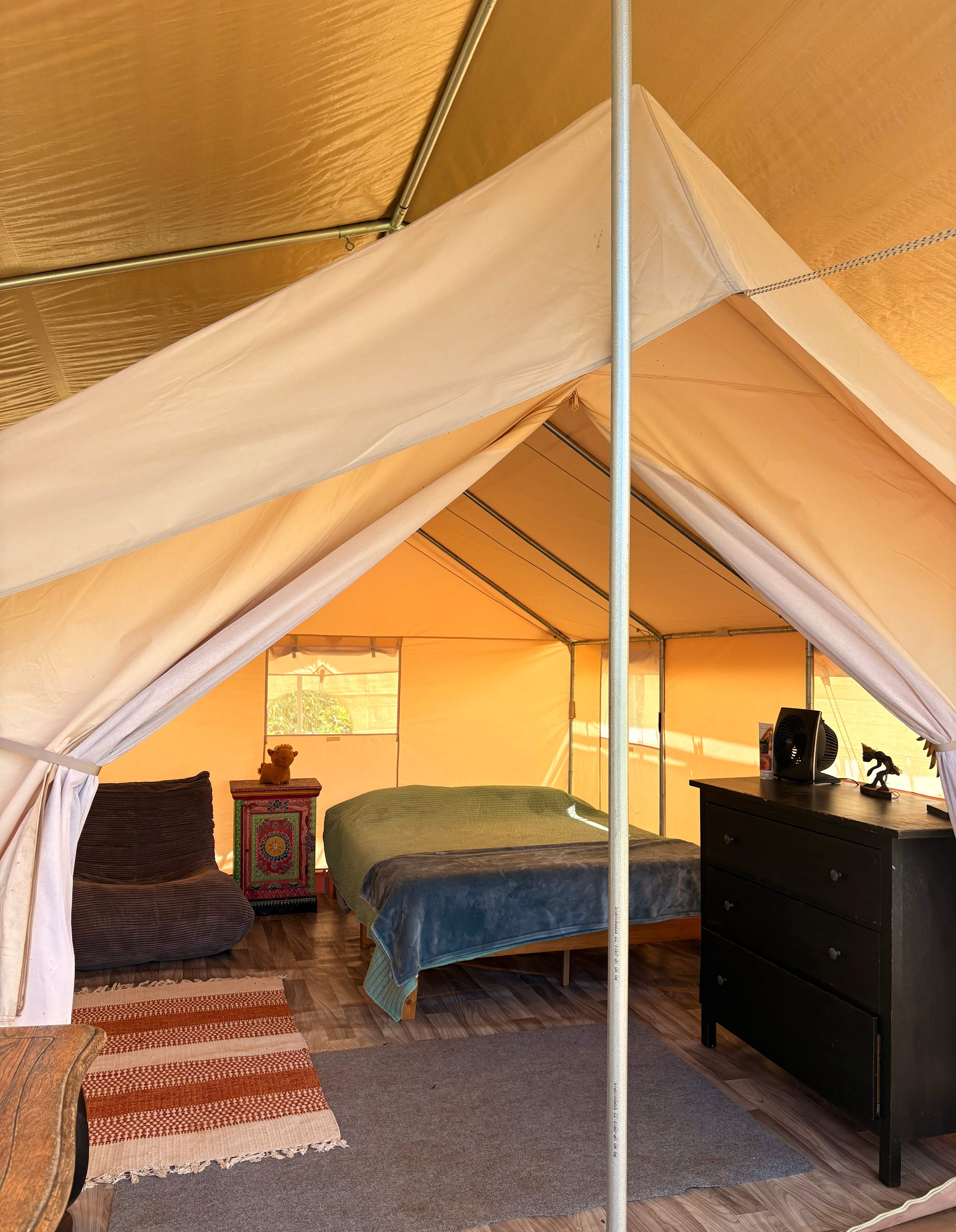 It was a bit windy during my stay, but the tent was very sturdy and provided excellent protection. The bed was super comfortable, and the setup had everything you could need: phone charger, outdoor sink, and a proper bathroom, perfect balance between nature and comfort.