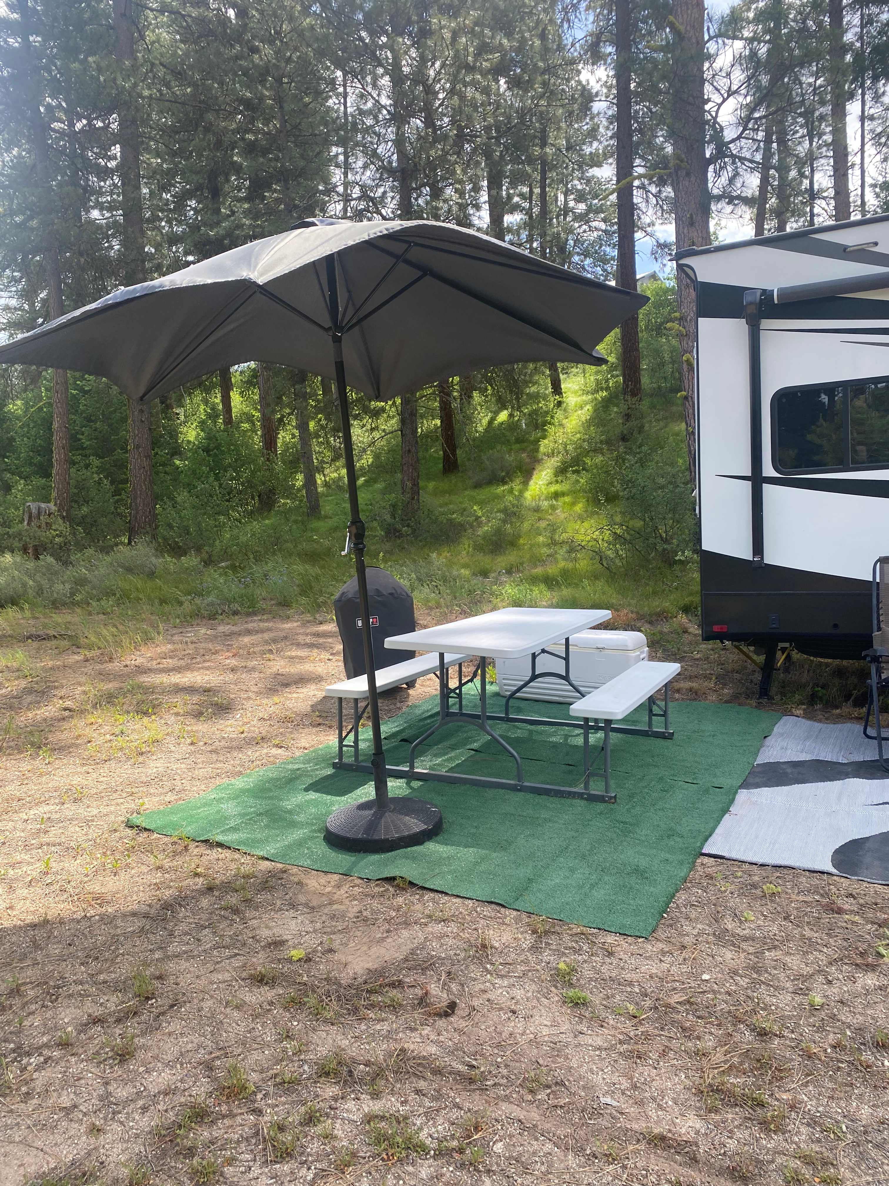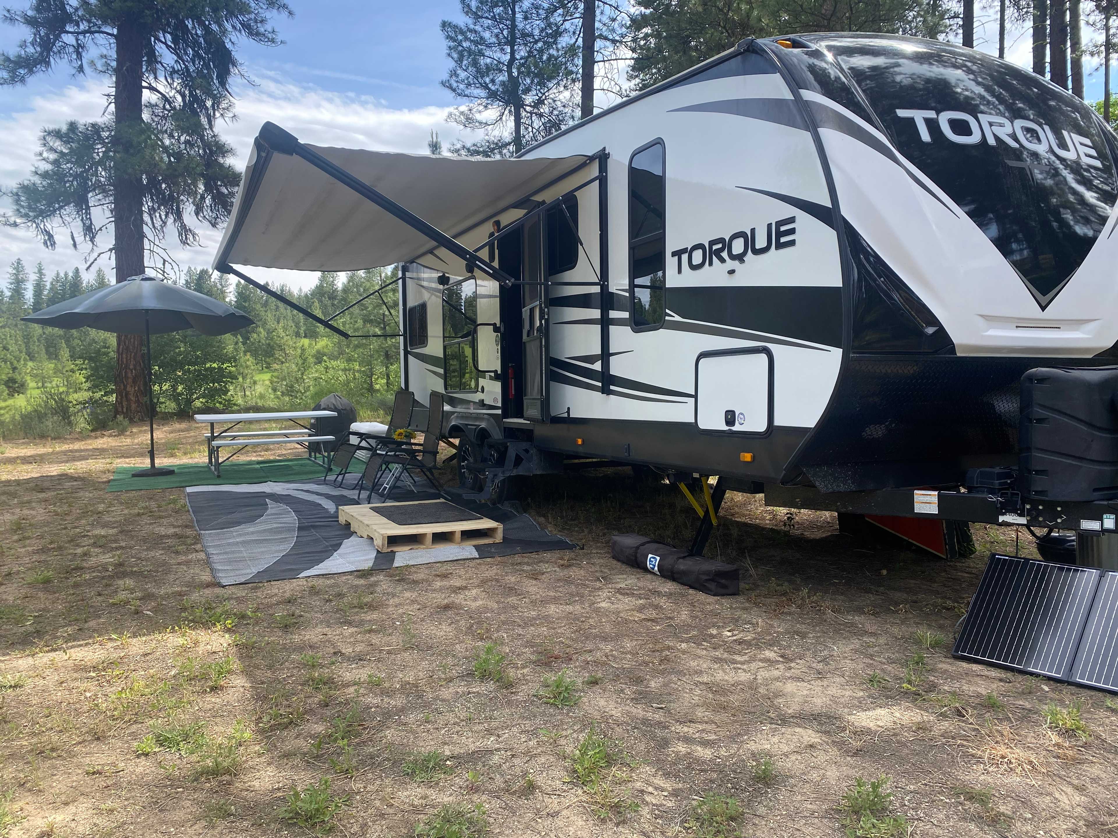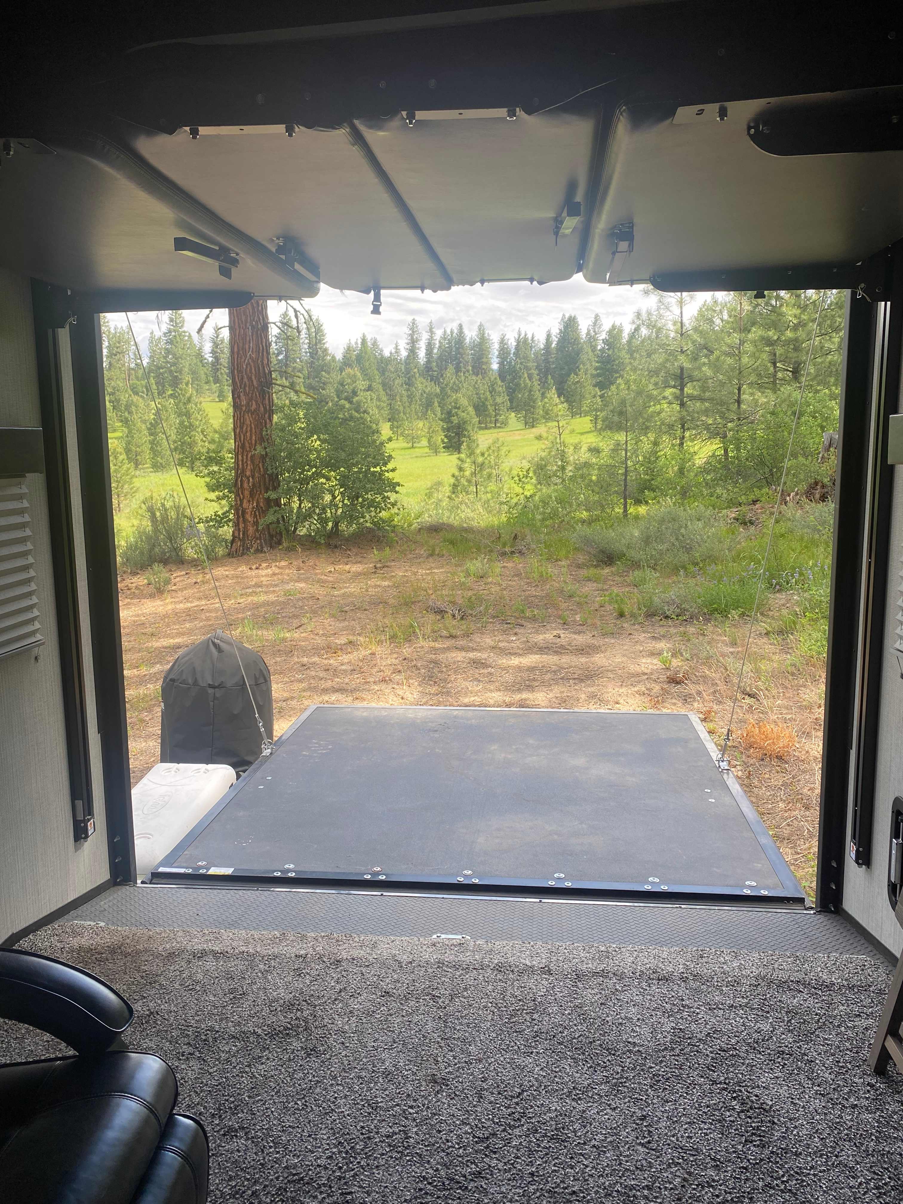 Enjoy your stay on private property nestled in the pines, surrounded by beautiful meadows and mountains, located just outside of beautiful BLM land for your enjoyment, wether you are trail walking/hiking, horseback riding, motorcycling, or ATV riding, you will enjoy so many beautiful trails in natural habitat. Close to our little old mining town with restaurants and pubs and stores. Just a 50 minute drive to Boise. Just bring your food/drinks and clothes. Includes all your house hold needs, charcoal, barbecue, large ice chest, picnic table with umbrella, to outdoor lounge chairs, 10 x 10 easy up, all linens are provided.This beautiful property is located, nestled in the Pines with access to BLM land for your enjoyment, whether it be hiking or ATV riding. Lots of miles of natural beauty to enjoy. Come back to camp where you will find a cozy 26 foot toy hauler, with a king size bed in the main suite, bathroom with shower, also two full size bunks, one can be used as a dining set. Or you can enjoy the beautiful outdoors sitting at a picnic table with an easy up,which is provided. We also provide the propane. And gas for the generator, first tank is provided, then you are responsible for your own. Plenty of room for your friends and their Rig, at an additional cost. Please ask details regarding sizes of rigs. Too many amenities to describe.