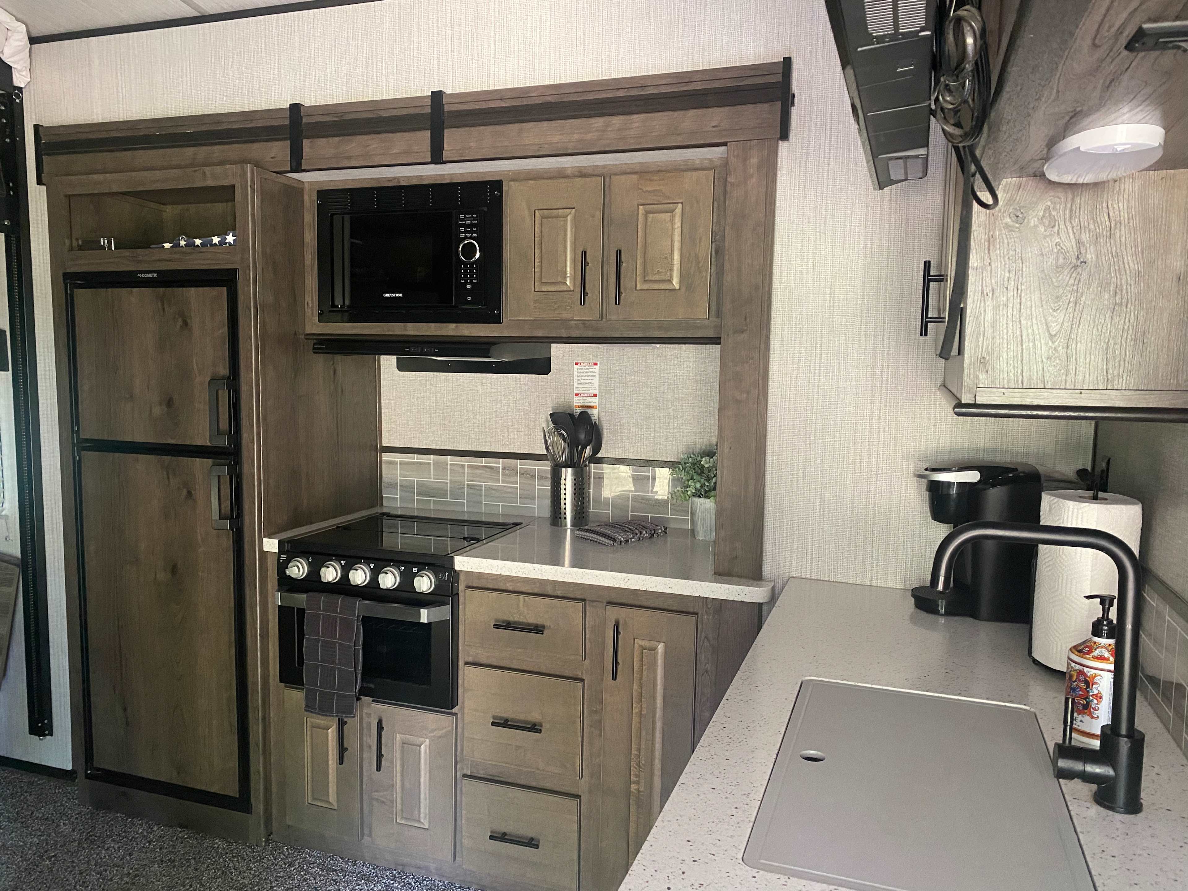 Enjoy the comforts of home—including flush toilets, showers, and a kitchen.