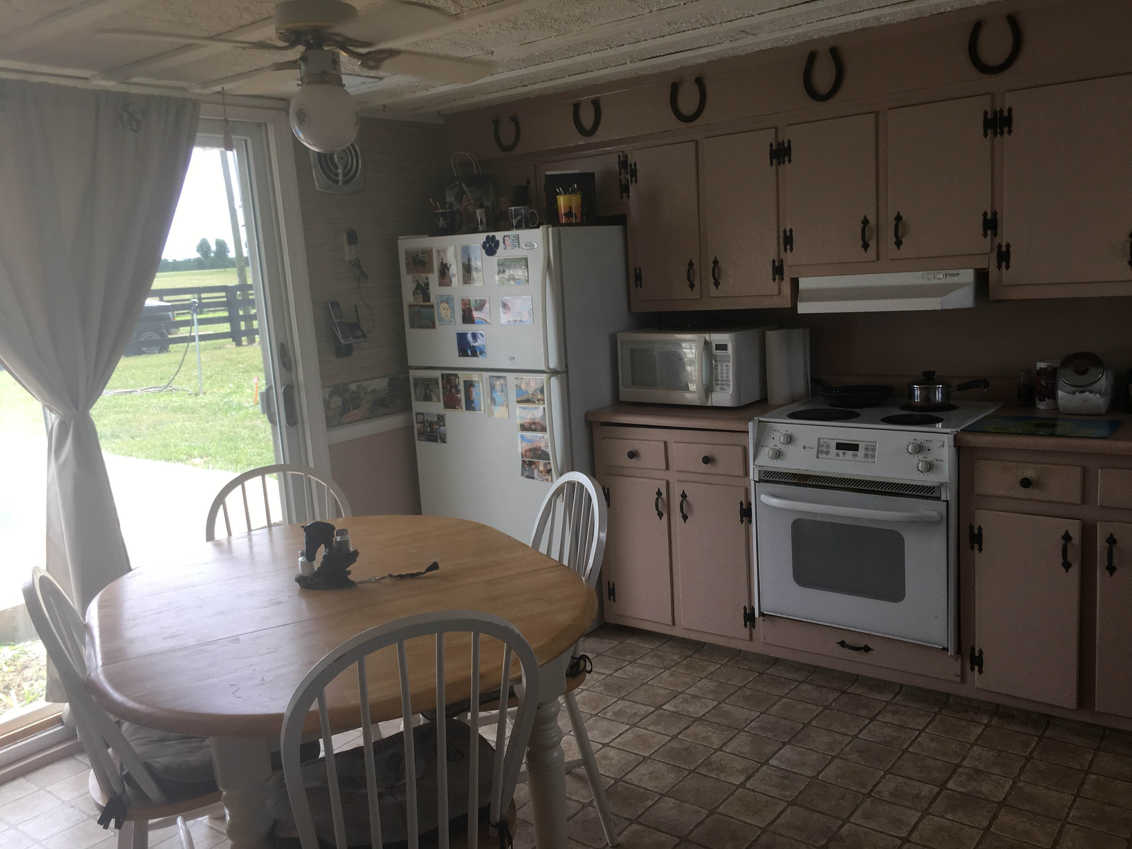 Outside we had the use of a brick patio with wrought iron table and chairs, charcoal grill, and a fire pit. Good sized yard in back and front. Back and both sides of the house have beautiful views of the rolling hills on this 200-acre horse farm, and up close and personal interaction with some of the horses.