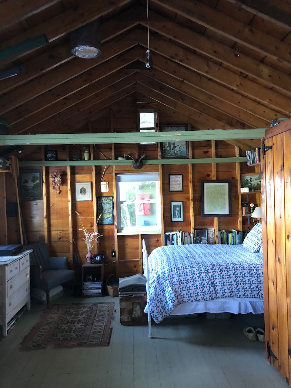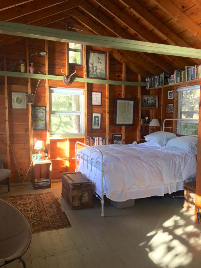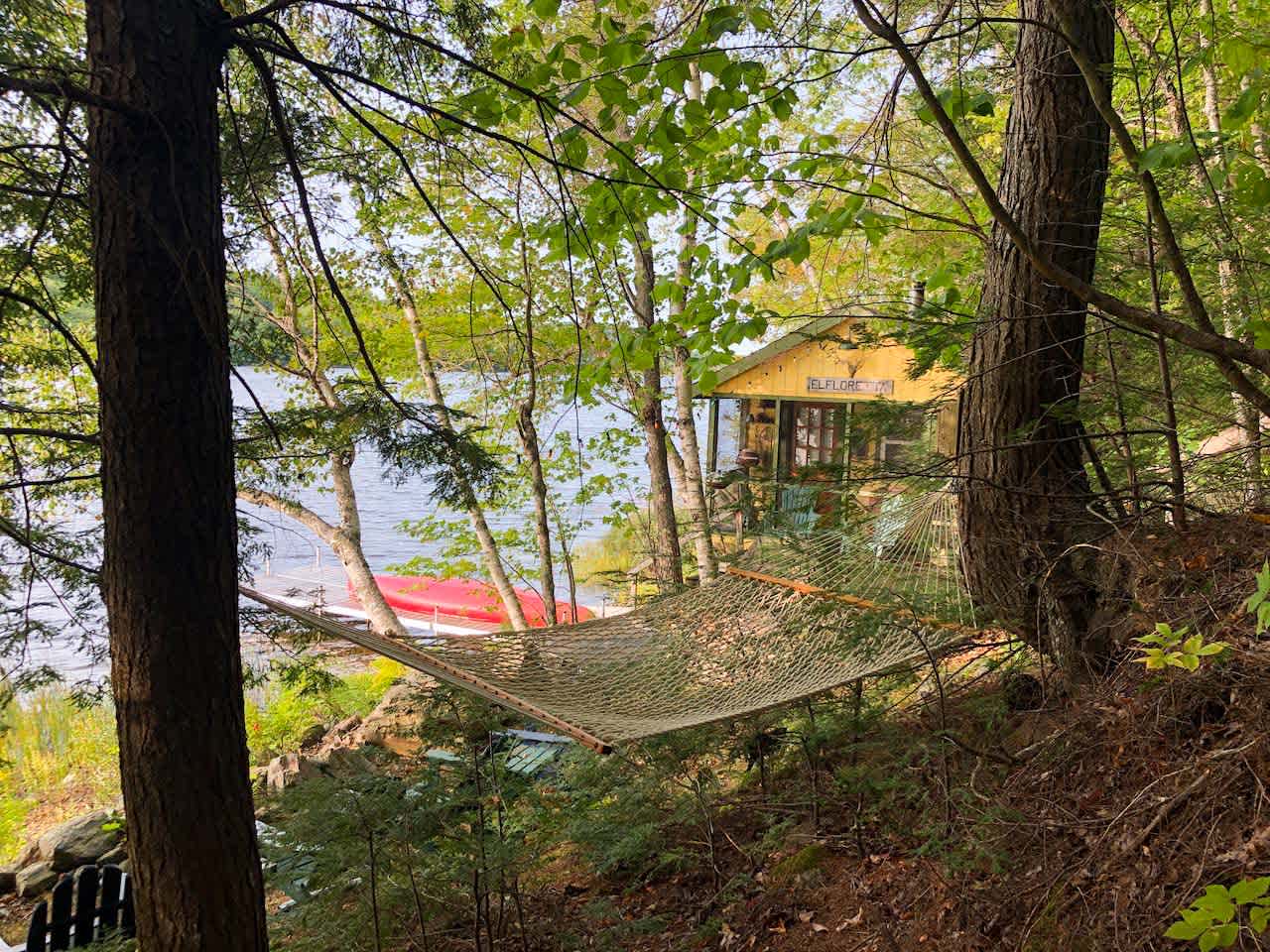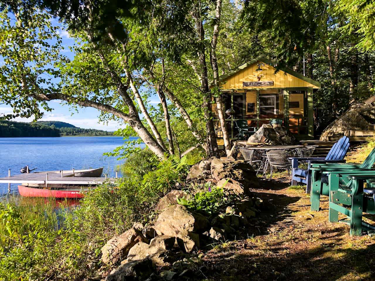 El Floretta is a classic 1950s sportsman's camp located on the shore of Long Pond that offers excellent fishing, paddling, swimming, and wildlife viewing. The cabin is conveniently located 8 miles from the town of Bucksport which has a grocery store, hardware store, ice cream shop, restaurants, laundromat, etc. Acadia National Park is less than an hour away. There are good hikes, flea markets and antiques, and good dining in the area. The towns of Belfast, Castine, Blue Hill, Brooklin, Deer Isle, Stonington and Ellsworth are within 30-40 minutes, as is Bangor airport (BGR). Furnished with a table and chairs and a full-size bed--plus lots of windows to open for fresh air and water views. In the kitchen are plates, glassware, utensils, pots and pans, and french press. Hammock, Adirondack chairs, dock, canoe and kayak, life jackets, and paddles are available for your use. There are fishing rods and some tackle available. Hot and cold water (subject to freezing temps), indoor and outdoor sinks, outdoor shower, electricity, heater for chilly mornings, gas range, refrigerator/freezer, charcoal grill, and a composting toilet in an outhouse. While there is no wifi, cell reception is generally good and we have had great success using our phones as wifi hotspots for computer wifi access. The camp is situated between the road and the pond, and wooden stairs lead down from the parking area to the cabin, and then a few more wooden steps to the dock and shore.