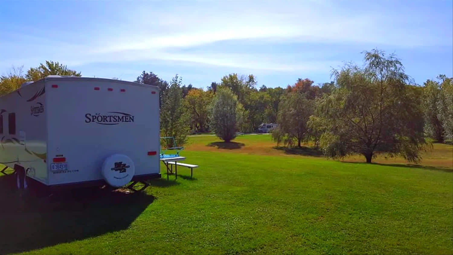 Spacious, level camping well-suited for travel trailers over 40 ft long.