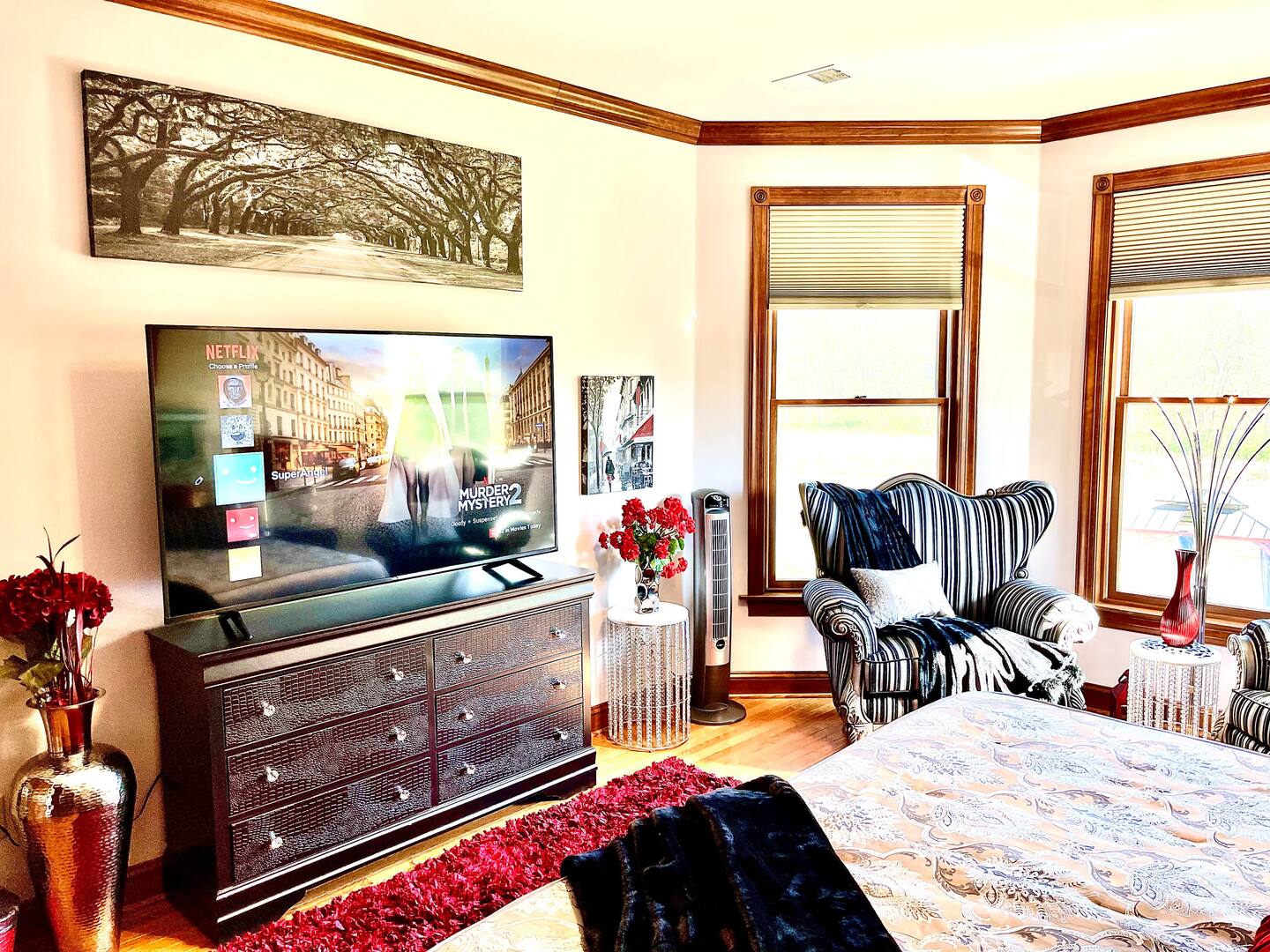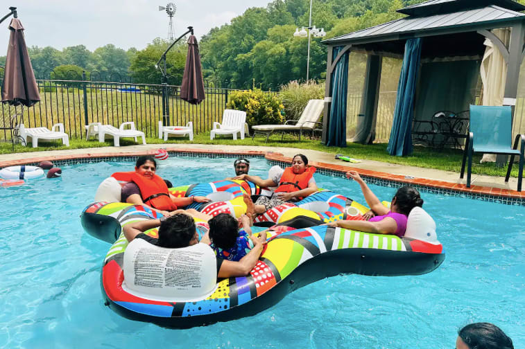 Come enjoy the perfect retreat for families, couples or anyone looking for fun, rest and relaxation among a quiet, breath-taking location. This revived historic farmland is an icon in the area. Located just 30 miles outside of Washington DC, features a grand Victorian home with 5 bedrooms and lots of modern amenities. The grounds feature a petting zoo, clubhouse, barns, a private pond for fishing, a beautiful pool area, a brick courtyard with outdoor fireplace, garden, and more. The space This unique farmstay on a 20-acre working farm features use of an all brick Victorian-style home that includes five bedrooms and three bathrooms that accommodate several guests comfortably with a great deal of privacy. Guests will share the 20-acre farm resort grounds with other visitors and staff but will have exclusive use of the home, pool, and patio are included with this booking. If you are interested in exclusive use of the entire resort, please inquire. All beds are king or queen beds. Enjoy modern amenities including TV, wifi and ethernet internet, a business center. There is a dining room with a huge table that seats 14 people. The home boasts a modern chic feel contrasted with a rustic flavor that makes for a very unique interior design experience. You’ll easily forget you are staying on a farm because we spared no expense in making the decor very interesting. We have a salt water inground pool and attached whirlpool open 24/7 from mid-May to September (weather permitting). The pool area features two large cabanas with mosquito nets, furnishing, and privacy curtains. The pool area has plenty of lounge chairs and pool toys. Don’t be surprised if an alpaca walks up to the pool fence to check on you. We designed our pasture area to circle the home so that guests can enjoy views of them through the windows. It’s pure bliss seeing them. The home is wonderful but it is actually the least awesome feature of our farmstay resort. What everyone loves most about this farm are the animals, outdoor area, and the rural peaceful vibe. Locals and tourists alike adore this property as it has such a unique and beautiful layout. The visual beauty of the property is not where the experience ends. Wait until you meet our herd of alpacas, mini-cow, mini-donkeys, emus, bunnies, exoti