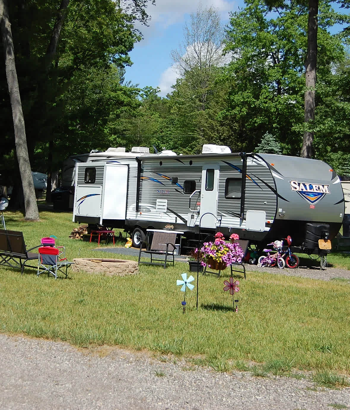 Nestled in the serene countryside of Muskegon County, Michigan, Crockery Creek RV Park stands out as one of West Michigan's top camping destinations. This tranquil setting offers a perfect escape for families and outdoor enthusiasts alike, providing a unique blend of relaxation and adventure. Spanning 68 acres, our park features a variety of activities suitable for all ages. Whether you want to take a refreshing dip in our inviting pool, challenge friends to a game of horseshoes, or enjoy a peaceful walk through our scenic grounds, there's something for everyone to enjoy. Crockery Creek RV Park is fully equipped to meet all your camping needs. We offer 121 spacious campsites, each with full hookups, concrete pads for your camper, and cozy fire pits for evening gatherings. In addition to our well-stocked general store and convenient laundry facilities, our banquet hall is available for special events, ensuring that all your daily necessities and celebrations are well taken care of. Experience the charm and comfort of Crockery Creek RV Park, where unforgettable memories await.