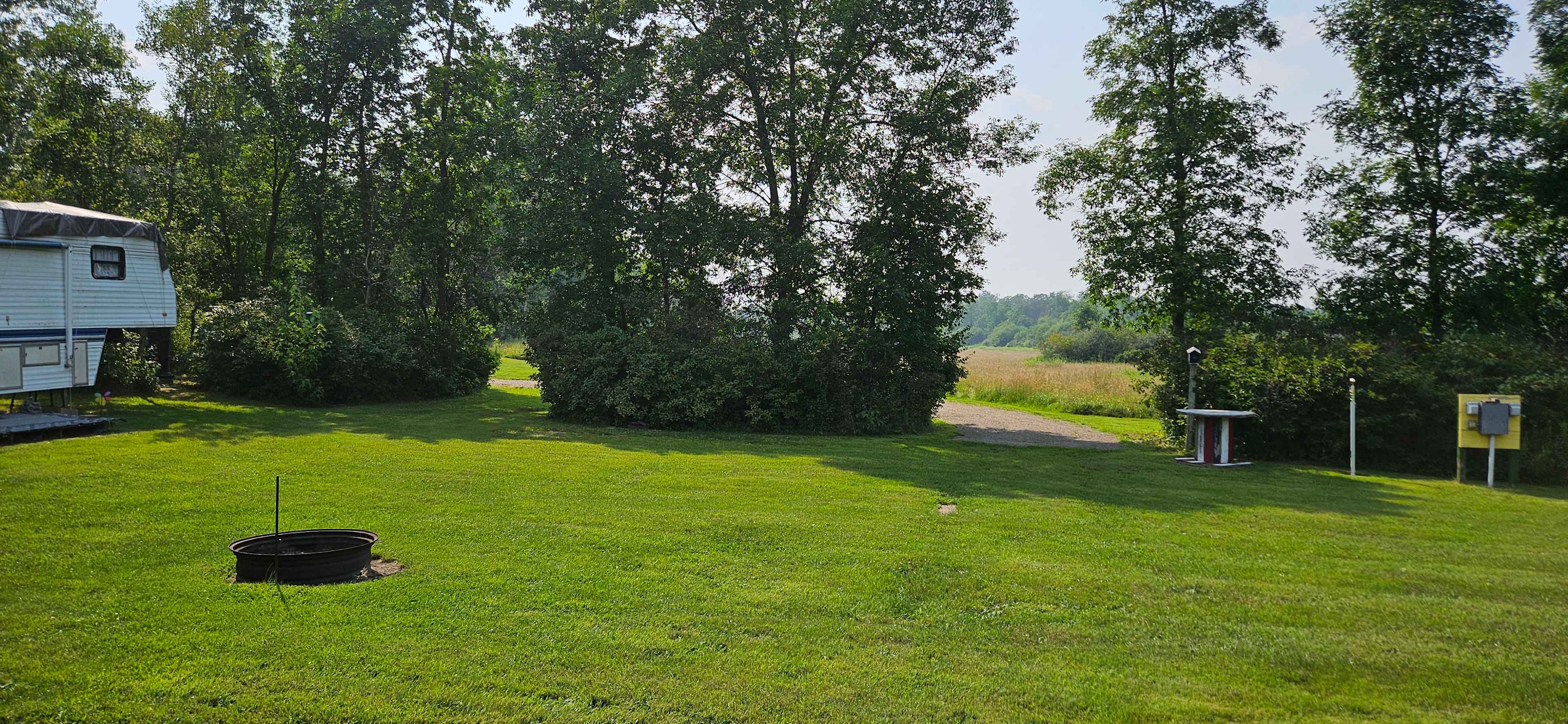 40 acres of peaceful hunting land with a mixture of woods, swamp, hay fields, and a permanent campsite established in the corner. Plenty of room for parking and multiple campers/tents. Campsite is well maintained and has 30 amp hookups, a picnic table, fire ring, and an outhouse to use.We carved out a corner of our 40 acre hunting land to create a campsite where family and friends could gather and enjoy themselves. It started out quite modest and year after year, grew into something we are proud of. We made many small improvements and eventually added an outhouse and electricity. We have enjoyed it for years and would now like to invite you to enjoy it too.