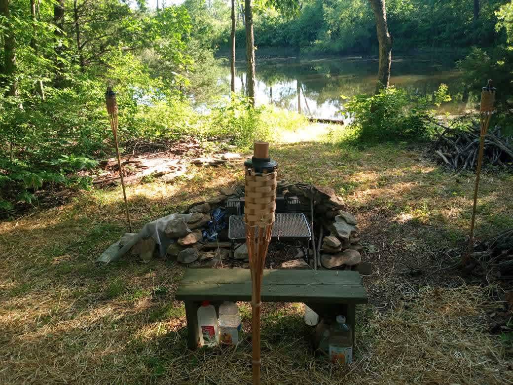 Seated on a secluded one-acre site, Deer Lake Retreat offers a peaceful, primitive camping experience in the heart of nature. This cozy, private spot is perfect for those looking to disconnect and enjoy the beauty of the outdoors. The camp features a covered camping structure with two twin mattresses, you must provide your own bedding. There’s plenty of space for an additional tent, allowing for a small group or family to enjoy the campsite. There is parking for up to three cars, the campsite is easy to access. The campsite is equipped with a fire pit and firewood provided. Tiki torches are provided but you must bring your own torch fuel. There’s also a table for food prep. This site has a porta potty but no shower or running water. Access to the lake for fishing, swimming and paddling is available but you’ll need to purchase a day pass through the City of Crystal Lakes website, which gives you access to all five lakes in the area. While swimming is allowed, we recommend you use the lakes as fishing and paddling only. Escape the hustle and bustle and experience the magic of private, lakeside camping. Well behaved pets are allowed.