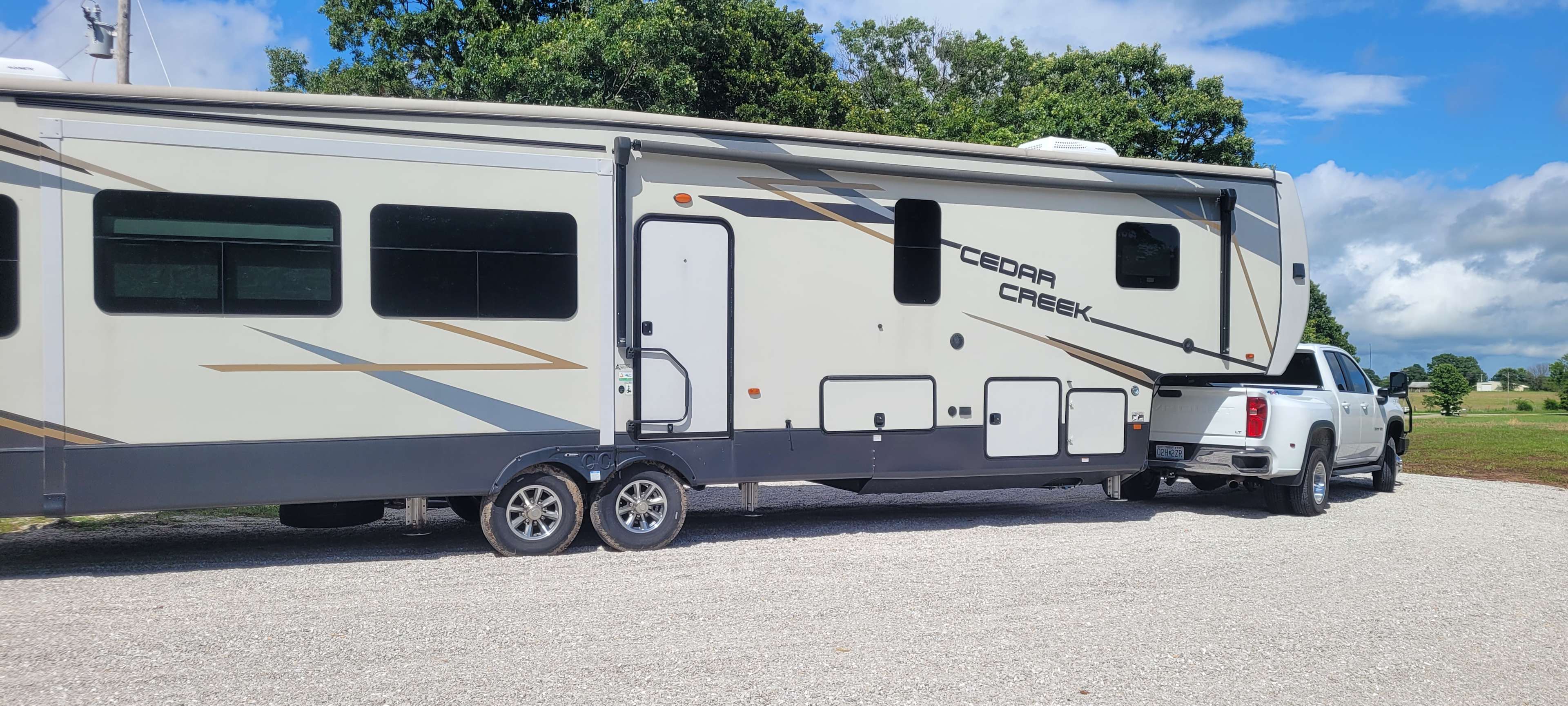 Come enjoy country life near the lake! This spacious campsite is the perfect home base for all your lake vacation fun. Big-rig friendly, with plenty of parking space to bring your boat. Located just 4 miles from a public boat ramp, the site offers 50-amp full hookups, with the option to add an additional buddy RV with 30-amp full hookups. Life is better at the lake!RV site is an oversized gravel pad on 15 acres with water, electricity and sewage hookups. There are no bathrooms or amenities here, Guests will need to be self contained.