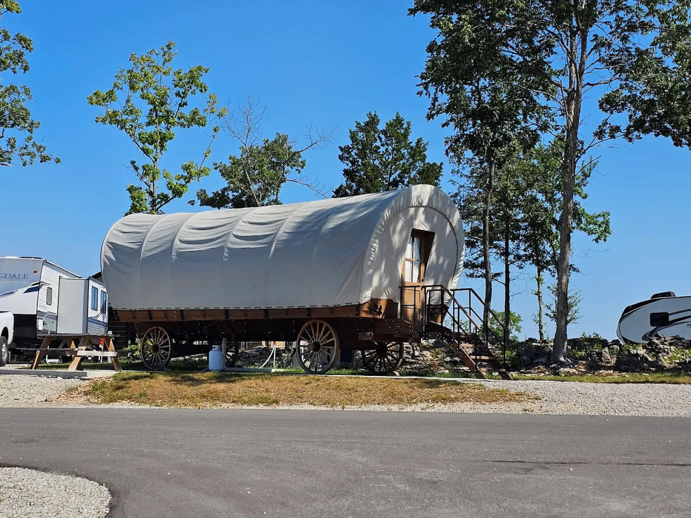 Discover the unique charm of Landing View Campground in Branson, Missouri, where you can experience the perfect blend of nature and comfort on your next glamping getaway. Our campground offers spacious sites designed for a relaxing camping experience, allowing you to unwind while surrounded by the stunning natural beauty of the area. Enjoy breathtaking views of Lake Taneycomo, which is perfect for fishing and boating enthusiasts. Explore our numerous hiking trails that wind through the picturesque landscape, providing opportunities for adventure and exploration. For your convenience, we also offer on-site laundry and shower facilities, ensuring a comfortable stay for the entire family. When planning your visit, remember to take the Hollister, MO exit for easy access to our property. With nearby attractions such as swimming holes, outdoor activities, restaurants, and shops, Landing View Campground is the ideal destination for creating unforgettable memories with your loved ones.