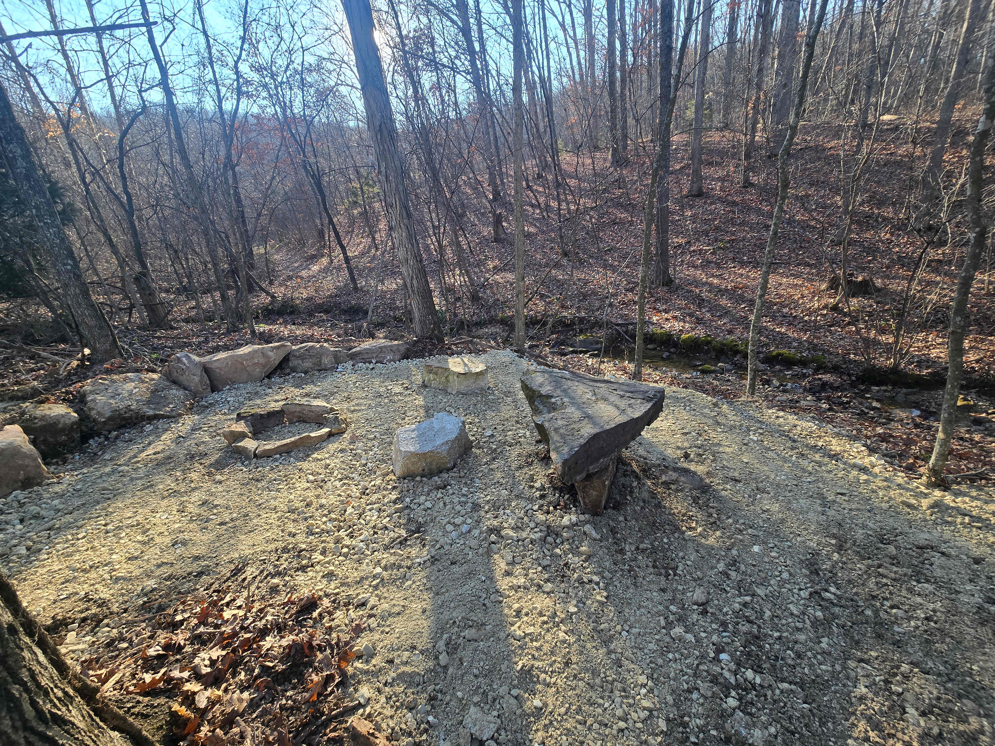 Back country campsites are available through out the park. Feel free to pitch anywhere but please leave no trace. Also available is our large parking area for car camping and small vans or pop-up style campers. Fires are allowed, but make sure they are dead out before leaving unsupervised. Cave, climbing and 3.6 miles of hiking trails.
