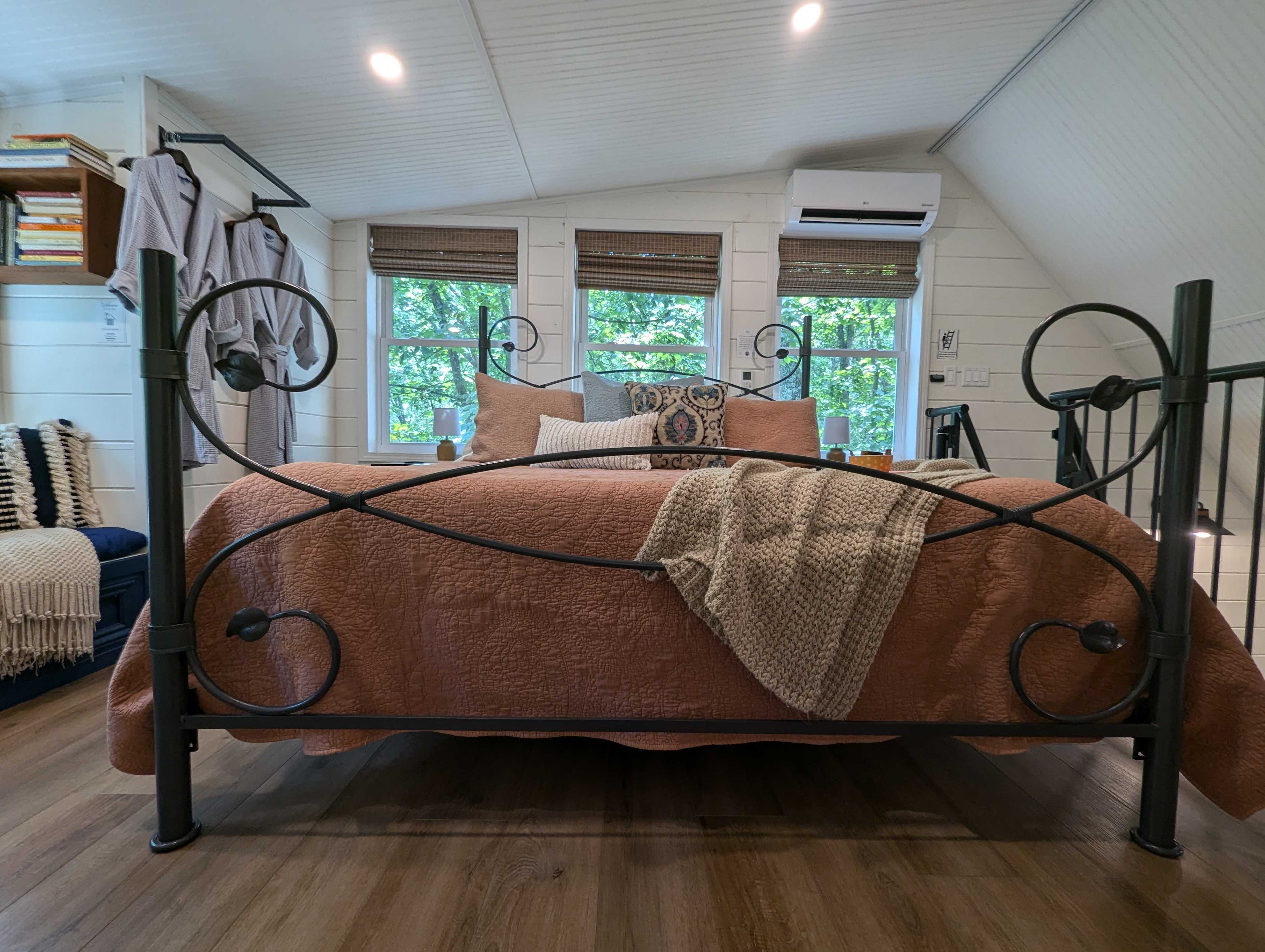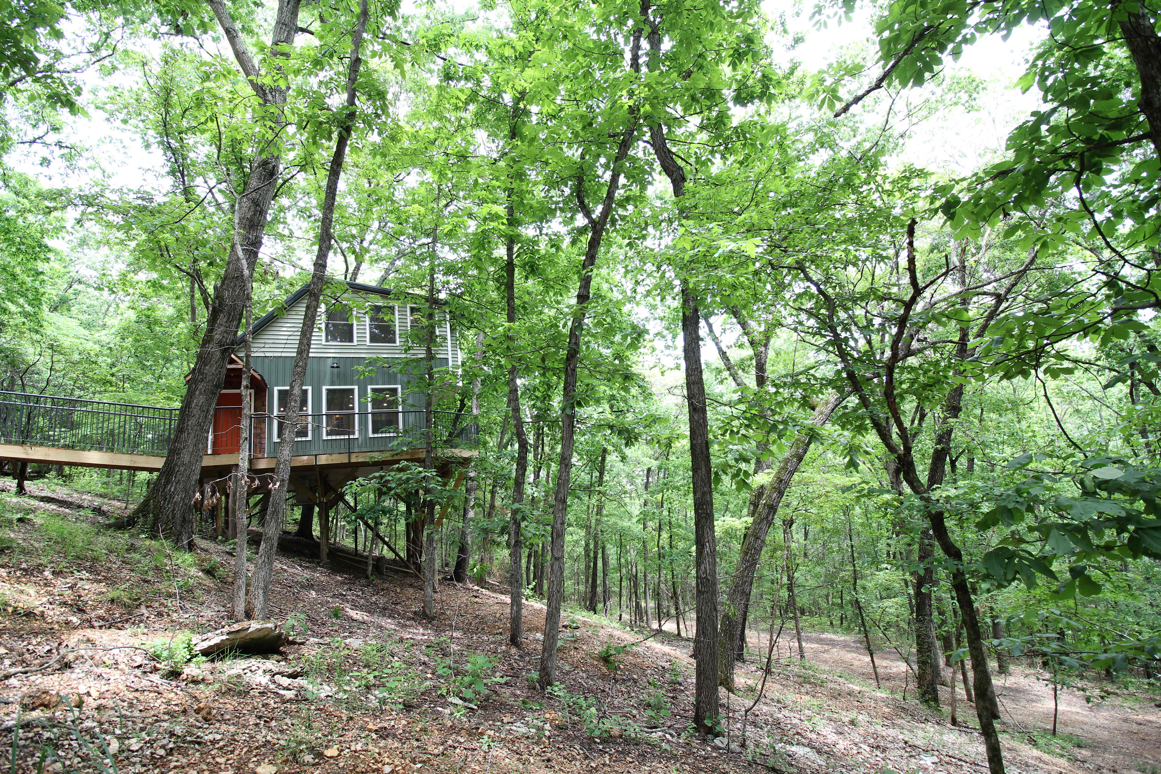 Escape to Tree Hugger Hideaway, a custom-built treehouse with unmatched seclusion. Perfect for romantic getaways or family retreats, this treetop escape sits on 48 private acres of Ozark beauty, with private hiking trails and a pond. Proudly featured in Missouri Life Magazine, our treehouse has been recognized as one of Missouri’s most unique stays. Just 7 miles from Branson Landing & Silver Dollar City. Follow for open dates, tips and giveaways Tree Hugger Hideaway FB | IG | Pinterest Loft Bedroom: Plush king-sized bed, full bathroom with walk-in shower, Smart TV, reading nook with treetop views, and a luggage lift for convenience. A locking safety gate is installed for little explorers. Main Floor: Pull-out couch, recliner, half bath, Smart TV with YouTubeTV, and a dining table with stunning views—perfect for meals, cards, or board games (provided). Full Kitchen: Fully stocked with cookware, slow cooker, mixer, utensils, and a coffee maker with complimentary coffee. Entertainment: SmartTVs on both levels, Wi-Fi, and access to streaming services. Key Amenities: ✔ King Bed ✔ Full Kitchen ✔ 2 Smart TVs + YouTubeTV ✔ Free 100Mbps Wi-Fi ✔ Ladder with Handrails ✔ Luggage Lift ✔ Board Games ✔ Coffee Maker (Coffee Provided) ✔ Walk-In Shower ✔ Recliner + Pull-Out Couch Items to note: Loft Access: The loft steps are steep—treat them like a ladder with handrails. Always face the steps, and use the luggage lift for convenience. Supervise small children. Nature & Wildlife: You’re in the woods, so occasional critters may visit. We do our best to keep them out, but let us know if you’d like an extra spray. Bug spray provided in the downstairs bathroom. Driveway & Parking: The driveway is steep (Ozarks style!) but manageable—just go slow. No trailers at the treehouse, but we have extra parking at the top for boats, trailers, or extra vehicles. Additional Notes: Security camera at the gate entrance No pets No smoking