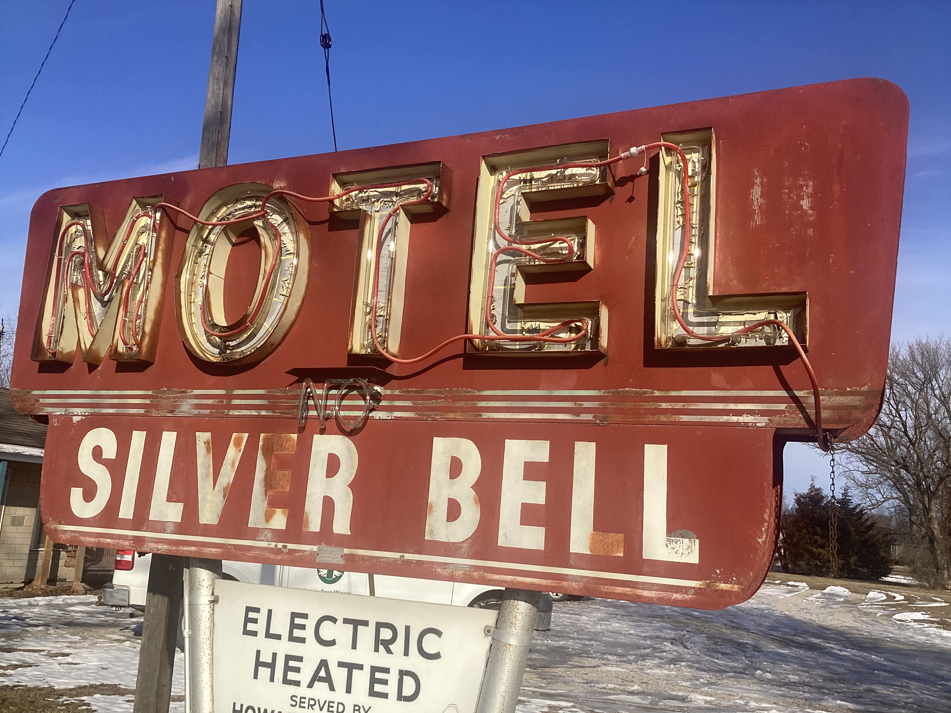 The Silver Bell is a historic Motel in Howard county with a backyard pond and a short drive to Central Methodist University in Fayette Missouri.Site 1 is positioned at the end of the Motel parking lot with plenty of space and electrical hookups.