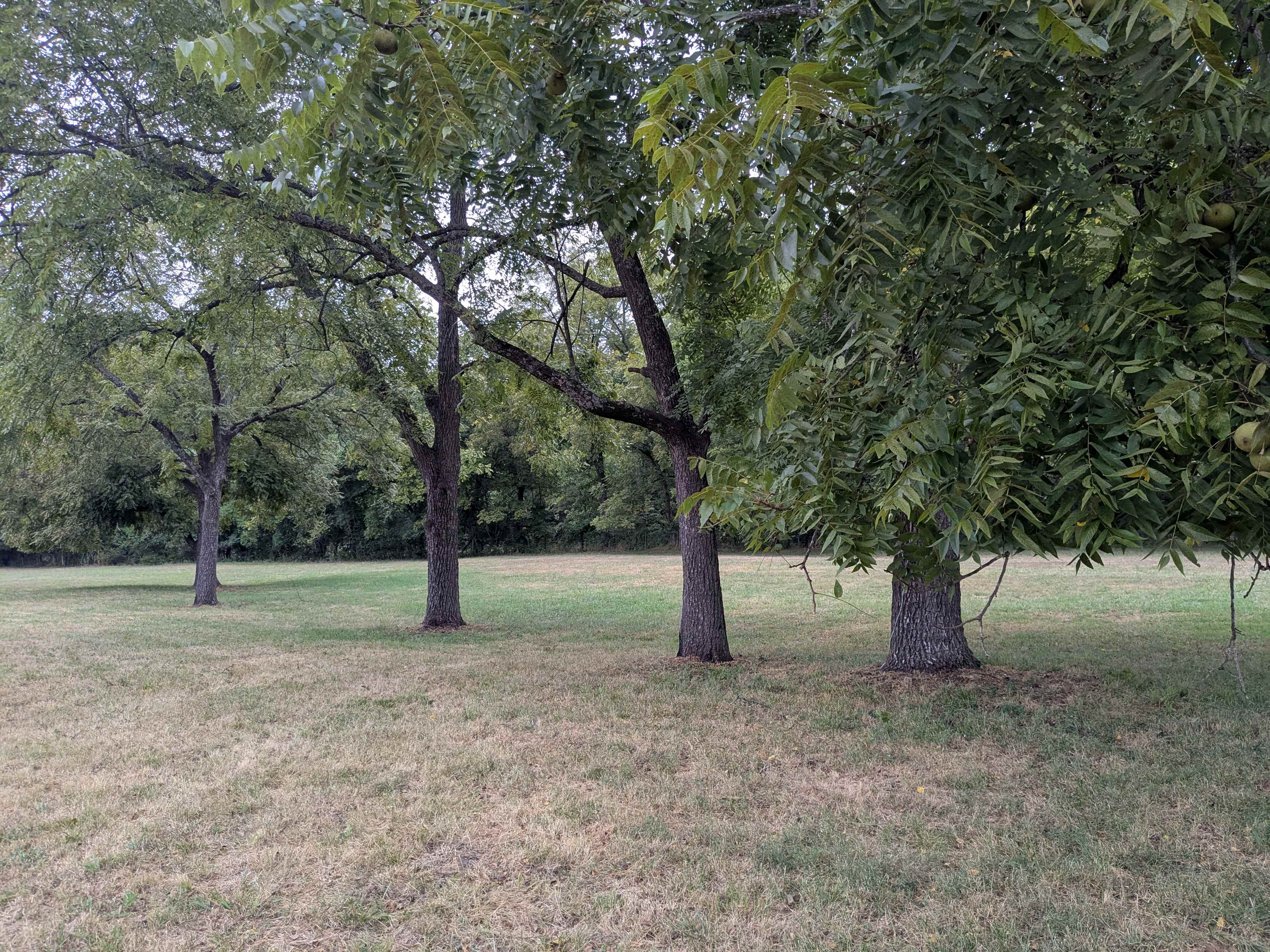 Place your tent under the shade of three large walnut trees. It is the closest to the bathroom facilities.