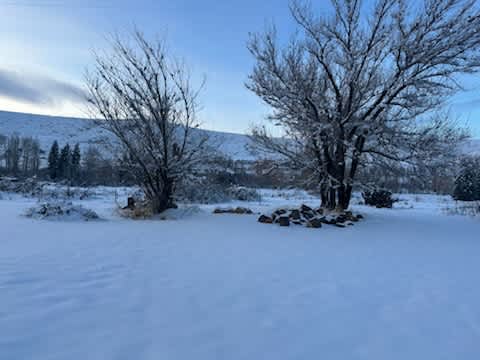 This site sits Kitty Corner from the single family dwelling. The is a flat space, perfect for a small van or slide in truck bed camper. There are no connections and you will need to be self contained. We do allow a fire in our communal firepit and pets on leash. As mentioned in the property description, we are walking distance to Broad Water Hot Springs. *Please note in the winter there may be deep snow you have to drive through to get to the site. If you have questions on if we have snow, please message me.