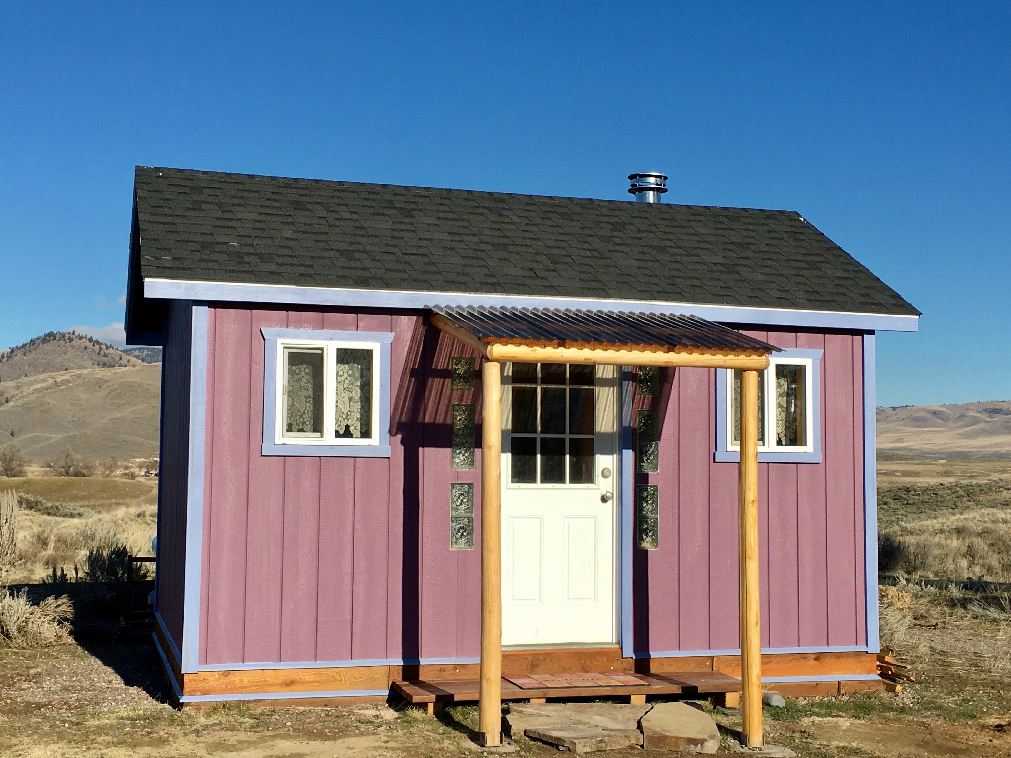 The address is on the mailbox 57578 and the sign "Sam's Place" is on the gate. Enter the driveway and continue towards the Barndominium and you'll see the Garden View Cabin (Green) on the right (North) side of the driveway. Park near the orange cones and reflectors. Your cabin opens to the garden with access to the outdoor kitchen and easy access to toilet and shower facilities through the north green gate, which we must keep closed to keep deer out. Feel free to explore the garden, outdoor kitchen and the 101 acres of open high desert landscapes, with a jeep trail heading East to the Bitterroot River, our East boundary.
