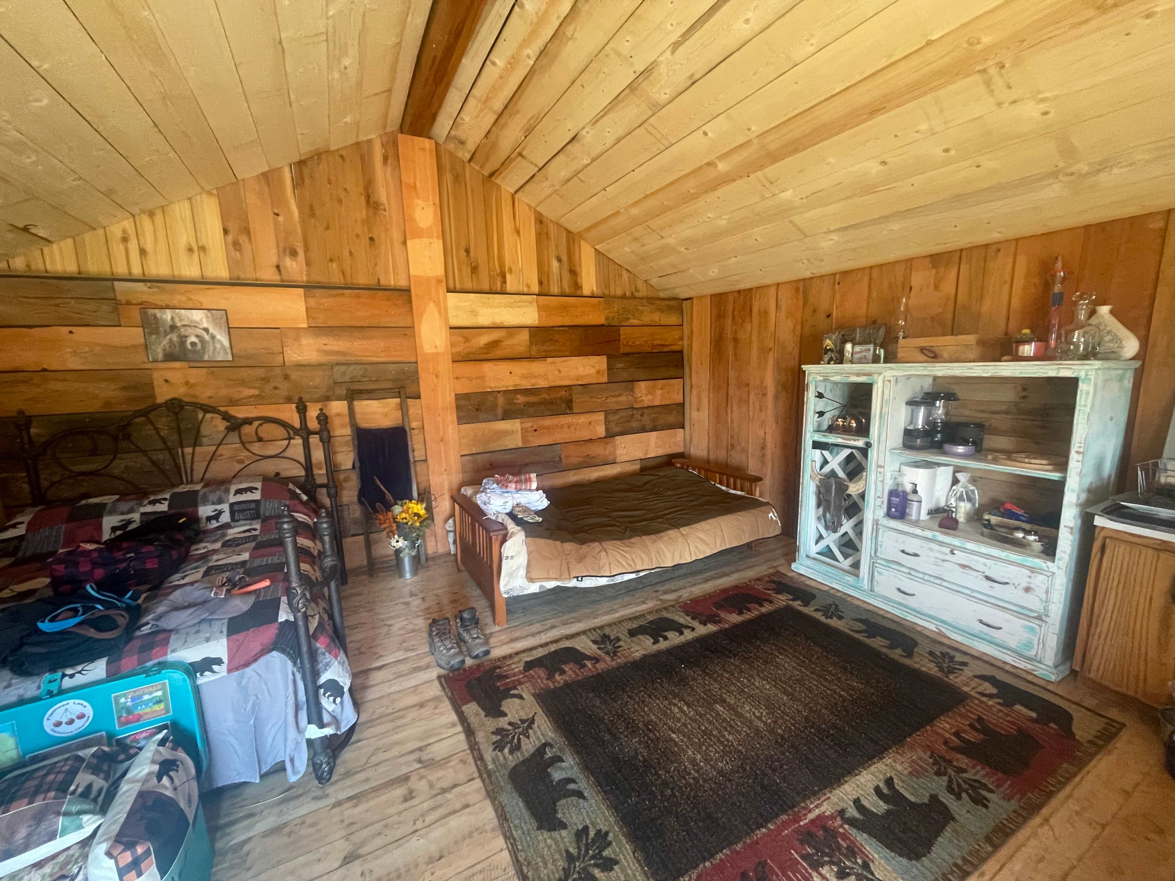 Rustic Montana Getaway / Jeremiah Johnson Retreat / Escape to this beautiful rustic log cabin retreat, minutes from Lake Sophia, Tettrault, and Lake Koocanusa! Outdoor fire pit and outdoor sitting area with BBQ! The sitting area also makes a perfect spot for your Montana family photographs! The land owner can help you with that, and also feels this would be a great spot for a wedding venue, and would be happy to discuss that at a different rate! Perfect for romantic getaways, outdoor adventures, or peaceful retreats! Close to Abayance Bay for the summer concert series, The Bull Thing (Rodeo), Rendezvous Days in Eureka,, Hiking Trails, two golf courses, a brewery, the Old Red Barn (wine, coffee, charcuterie, gifts), The cabin had a beautiful antique bed that sleeps two and a futon that sleeps two but there is plenty of room for sleeping bags or roll away! Sleeps four comfortably, but could sleep six or more. Space available for an additional travel trailer and electrical hookup! A porta-potty and bottled water are available at the site, and we are in the process of working on an outdoor clawfoot tub and/or shower house! Eventually, there will be an outdoor hot tub! There is an entertainment center converted into a wine bar/coffee bar with coffee, tea, soaps, dishes, glasses, and amenities! For skiing Fernie, Whitefish Mountain, and Turner Mountain are all within about a forty-five-minute or less drive! Make sure you check out Cafe Jax 3 for the $7.00 breakfast menu, the Old Red Barn, and The Montana Farmacy Soap Saloon, which has candies and all sorts of goodies! Your host makes and sells gift baskets with Montana items and Lemon Grass Spa and Makeup Products! The cabin has electricity but no running water at this point. Come and experience a true piece of Montana History!!!The Jeremiah Johnson Retreat-Escape to a cozy log cabin retreat within minutes from Lake Sophia, Lake Tettrault, and Koocanusa! Perfect for romantic getaways, outdoor adventures, and beautiful peace! Muleys cross through the property! Close to Abayance Bay for the concert series, close to two golf courses, The Bull Thing (rodeo action), and allot of history! There is a full queen bed that sleeps two comfortably and a futon bed that sleeps two however you could sleep six or more with some creativity! There is an outdoor sitting area that would make a perfect family Photo Booth opportunity! A perfect place for a future wedding site at an additional fee! A BBQ, porta potty, and bottled water are a few of the amenities! Coffee, tea, soaps, dishes, wine rack/coffee bar space, and small cabin kitchenette! Fernie, Whiteifsh Mountain, and Turner Mountain are all ski locations within 45 minutes! Visit the home of Cafe Jax’s for their pick 3 for $7 breakfast or the Old Red Barn Antique Store, wine cellar, charcuterie goodies, and coffee bar! Visit Montana Farmacy candy and soap shop! Your host also makes made in Montana gift baskets and sells a Lemon Grass Spa and makeup line!