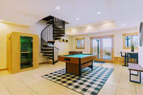 Perched above the charming town of Littleton, this luxury White Mountains cabin offers stunning views and prime access to New Hampshire’s top outdoor adventures. Just 20 minutes from Cannon Mountain and Bretton Woods, it’s an ideal retreat for skiers, hikers, and nature lovers. After a day on the slopes or trails, unwind in nearby Littleton or Bethlehem, where you’ll find craft breweries, cozy restaurants, and quaint shops. Whether you crave adventure or relaxation, this cabin is the perfect mountain escape.Escape to the White Mountain Adventure Cabin, a spacious 4-bed, 4-bath getaway set on 2 private acres. Guests have full access to the entire cabin, featuring two living rooms, a movie room, and a fully stocked kitchen—perfect for families and groups. Enjoy endless entertainment with tons of indoor and outdoor games, cozy hangout spaces, and room to spread out and relax. Outside, gather by the fire pit, explore the open yard, or simply unwind in nature. A comfortable, adventure-ready retreat for families, friends, and anyone looking to disconnect and play.