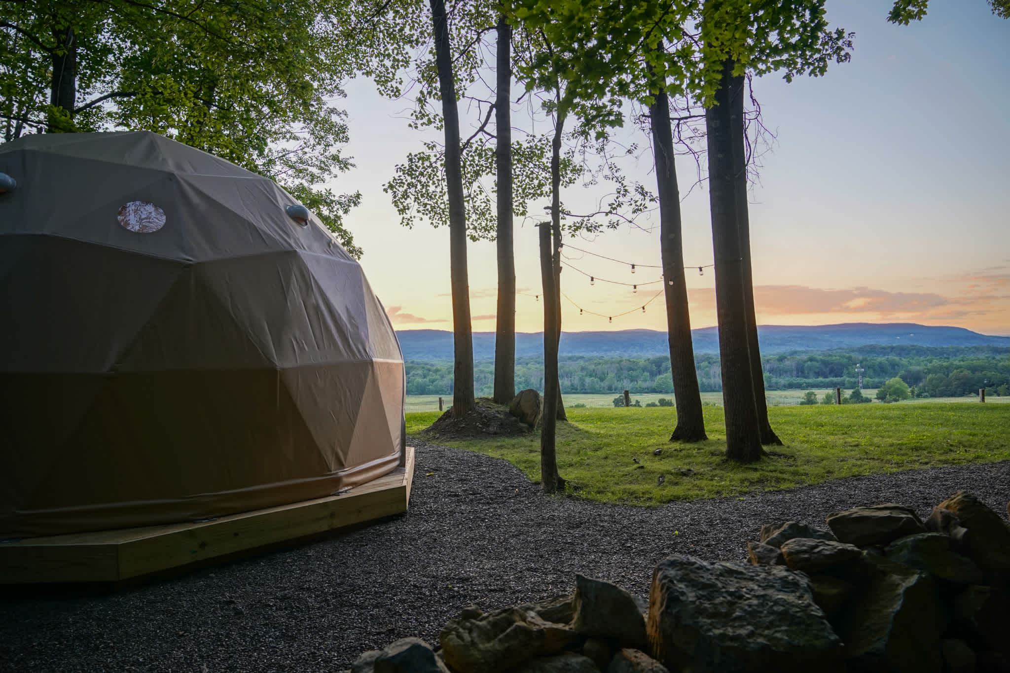 Located 50 miles from midtown Manhattan (approx 1:08 minutes) is our brand new campsite located right off the Appalachian Trail. The camp is at the base of Wawayanda mountain right between the iconic hikes "Stairway to Heaven" and "Pochuck Boardwalk" on the Appalachian Trail. Hike right from camp up to "Pinwheel Vista" (named one of NJ's best viewpoints!) The dome offers a great view of the valley down below and mountains in the distance. Included outside is a grassy area with a fire pit and picnic table. This unique site is a homey escape surrounded by nature making it the perfect getaway for all kinds of campers. This is one of many sites at Moon Valley Campground At the entrance to the property is the Valley Farmers Cooperative that sells local grass fed meats and artisanal farm goods. You can walk two minutes to Heaven Hill Farm which has plenty of goods, produce, and fun fall activities like pumpkin picking and haunted hayrides. Drive your car from route 94 directly to your campsite nestled in the woods with a great view of the valley. A perfect getaway from the city with plenty to offer. About 10 minutes down 94 is the beautiful town of Warwick or about 4 minutes in the opposite direction is the town of Vernon. Warwick is a quaint small town with plenty of great restaurants and bars, and famous for its apple picking. Vernon has plenty to offer as well including the popular ski resort/waterpark Mountain Creek and Minerals Spa (Located just under 10 minutes away.) The quiet charm of Wawayanda State Park appeals to hikers, campers, swimmers and boaters. Forested hills surround Lake Wawayanda creating a restful backdrop for canoeists and fisherman, while steep mountains challenge casual as well as serious hikers. A twenty-mile stretch of Appalachian Trail runs through the park, while the top of Wawayanda Mountain offers sensational views. More than sixty miles of trails are marked in the park.