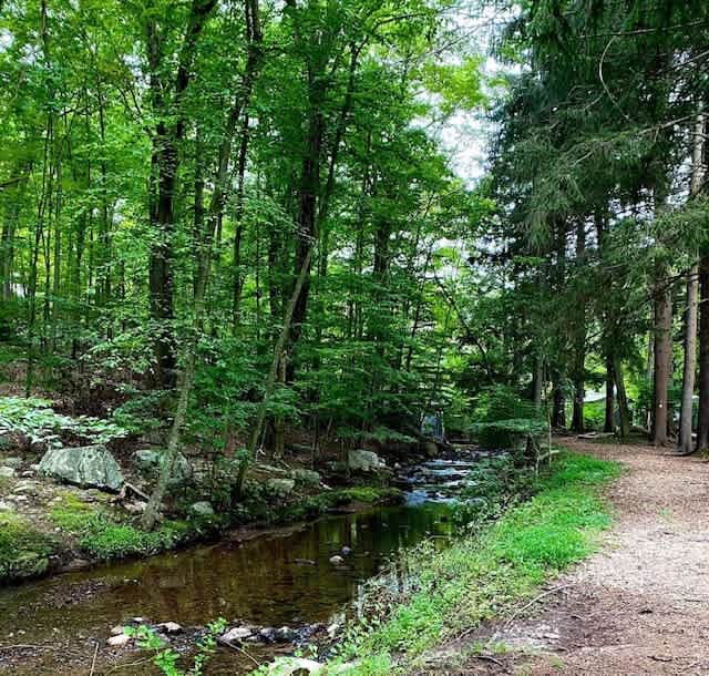Come experience 152 acres of preserved forest in the beautiful Highlands Region of northern New Jersey. Our nonprofit nature center has a rich history and offers events rooted in arts, education, and recreation. We have four rustic cabins with electricity available for overnight stays of 1–7 nights. A mountain stream runs through the property, and there are plenty of casual outdoor seating areas to relax in. There is also a large recreation field and private trails to explore during your stay with us. Our property borders Norvin Green State Forest, which offers miles of hiking trails, including 360-degree views from Wyanokie High Point. The Highlands Natural Pool is also adjacent to our property, featuring a spring-fed, Olympic-sized swimming pool open from Memorial Day through the end of September.