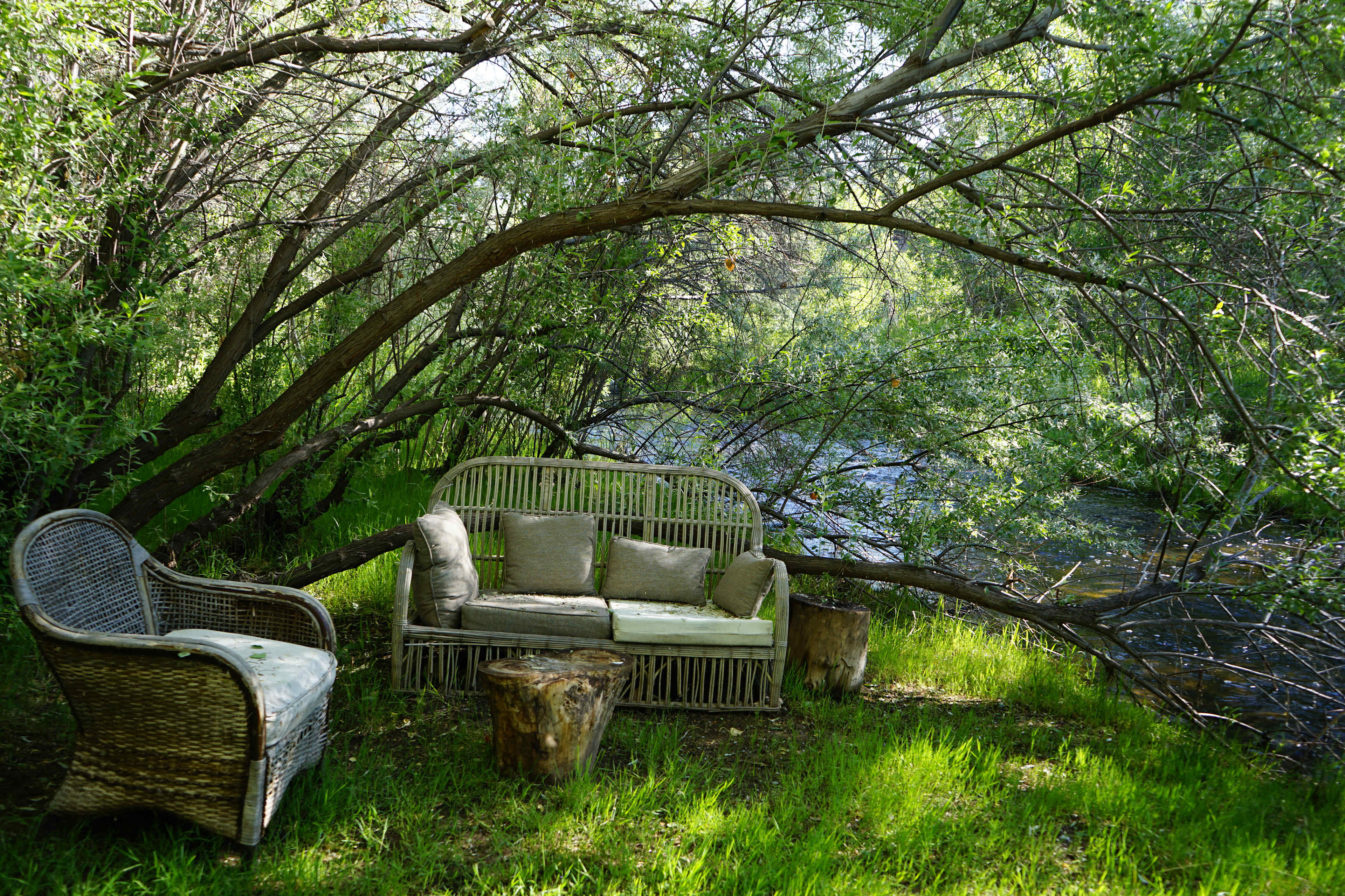 Lush high desert river oasis nestled in a fertile valley in the Carson National Forest right between the fiery expanse of Taos and the rolling colorful formations of Abiquiu. Peaceful private 3 acres right by the river at the edge of a little quaint town called La Madera (145 people, no shops)- just 6 miles to the healing mineral Hot Springs of Ojo Caliente. This site is located amongst the trees for shade, and adjacent to a serene pasture. The closest campsite to the river... only 50ft, you can hear the stream from here. It has a 12ft mosquito netted gazebo for shade and shelter with two comfortable sofas to lounge, several additional seating options, a small table and a fire pit. Only accessible by a green walking path, hence a tent site only. It can accommodate up to two tents comfortably, more if you like. Guests may use the bathroom in the main house, and enjoy the trampoline. With land by the river comes the mosquitos- June to August only. They are predominantly active during sunrise and sunset; long loose fitting clothes and a repellent work great. Or a campfire. +++ 6 miles to Ojo Caliente Hot Springs. There you will find the best restaurant in the area, with locally/organically farmed produce. Very yummy!  The land is naturally and beautifully wild- it is not a manicured campsite. The dirt rd down to the property is best suited for higher clearance vehicles, but is manageable for city cars.  Waterhole, Waterfall and climbing sites near by, as well as Plaza Blanca, Abiquiu, Ghost Ranch and the Taos Gorge are 30 mins drive away.  *No cell service in the greater area- a wonderful opportunity to reconnect with nature. WiFi around the house/deck allows for WiFi Calling: that’s a setting in your phone that enables phone calls and texts beside usual internet access.