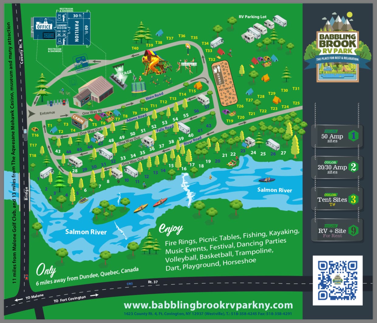 Babbling Brook RV & tent Park is located riverside along the salmon River in NY. 57 Full hookup sites 27 back in to the river bank & 30 pull through.