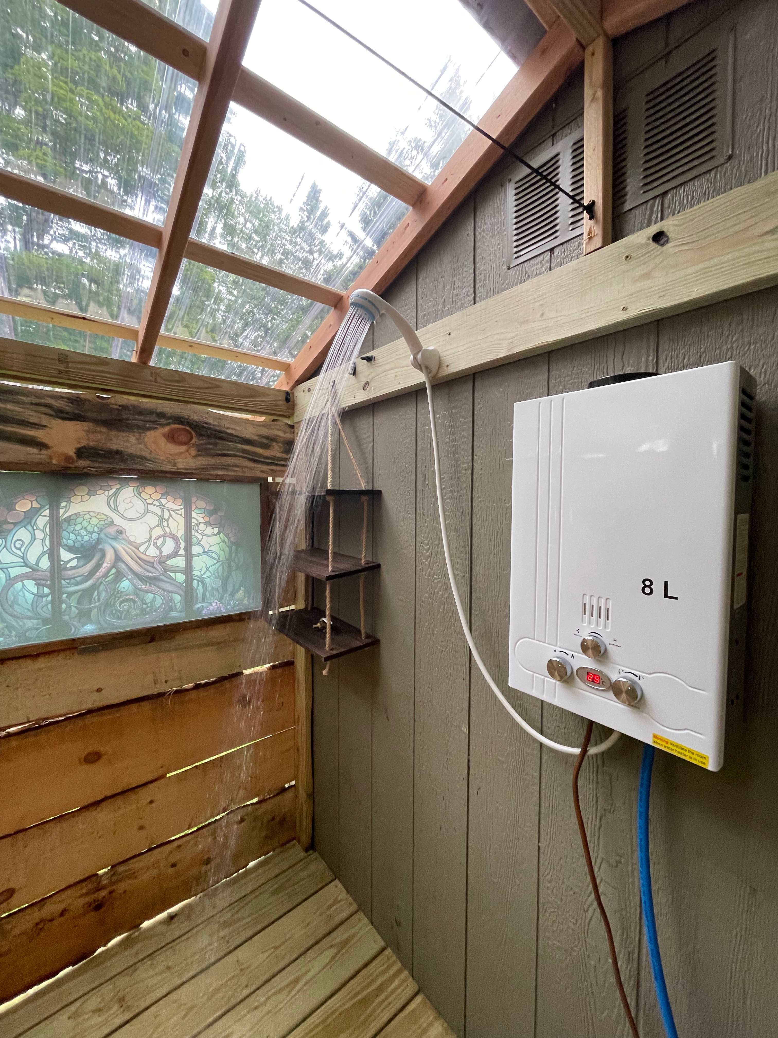 The campsite was absolutely wonderful. The facilities were thoughtfully designed, with everything you could possibly need: comfortable chairs, a fire pit, a fully equipped cooking station with a gas grill (fuel provided), and even an on-demand hot shower. All we had to do was set up our tent and relax.