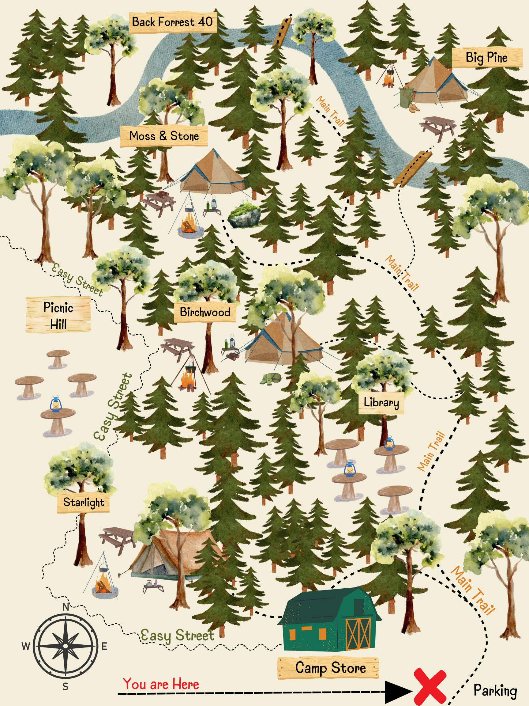 I was really impressed with our campsite. Mary thought of EVERYTHING to make our trip a success. On our drive to the campground, I thought of a few things I wished I had remembered to bring: Mary had them all. The campsite is spacious and very well-kept. Plenty of cleverly-made surfaces (tables, shelves, benches around the fire pit). Shady areas if the sun is out, with tarps overhead in key areas of the campsite. The tent itself was cozy and well-set up and very well-protected from rain. And, despite the temperature dipping to the 20s at night, we were totally fine! Comfortable bed. All the kitchen stuff you’d need, and more. Little solar light “sticks” to guide you around at night. Cleanest “outhouse” I’ve ever used. The site was very private; I had no idea where the (two?) other tent sites were. Our site, Starlight, was in the words, but at the very edge, next to the field. I liked that location for the view and spaciousness, but it did make for extra wind if it’s a windy day (because you’re not as protected as the sites that are deeper in the woods. Mary was very responsive to questions and helpful in providing tips. She even laid down a lot of straw on the trail to help us navigate the mud. (It has rained a lot in PA and NY in the days leading up to our trip.) Overall, a GREAT experience.