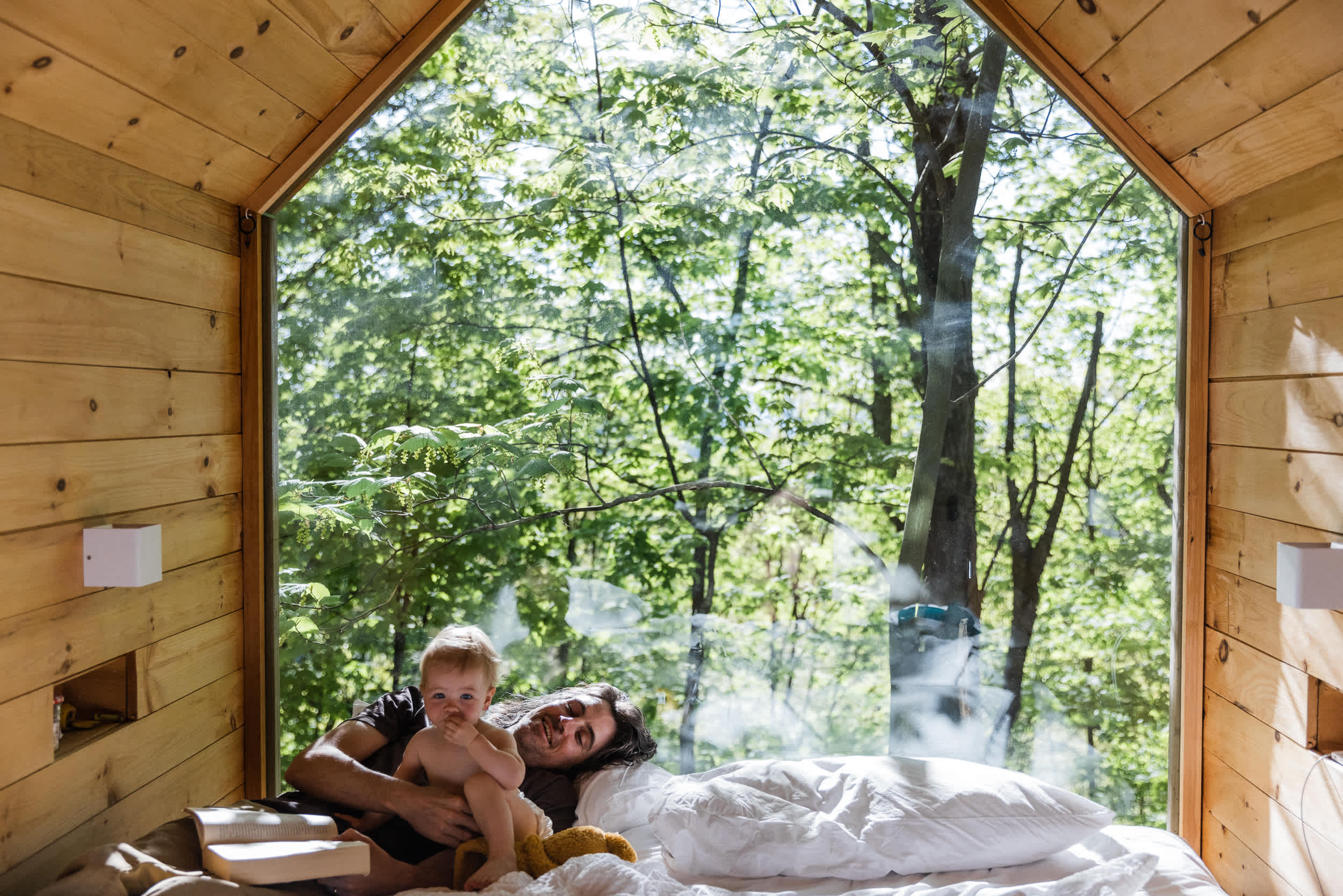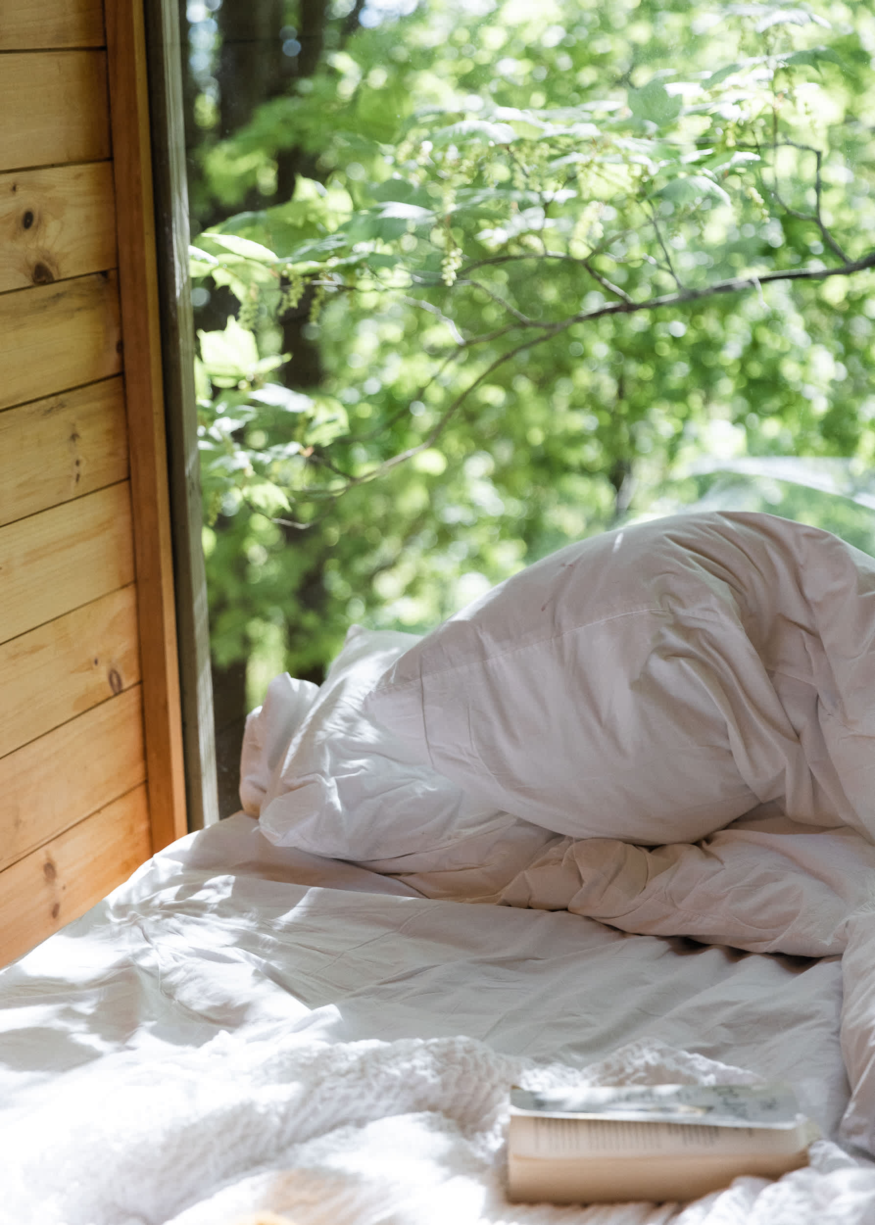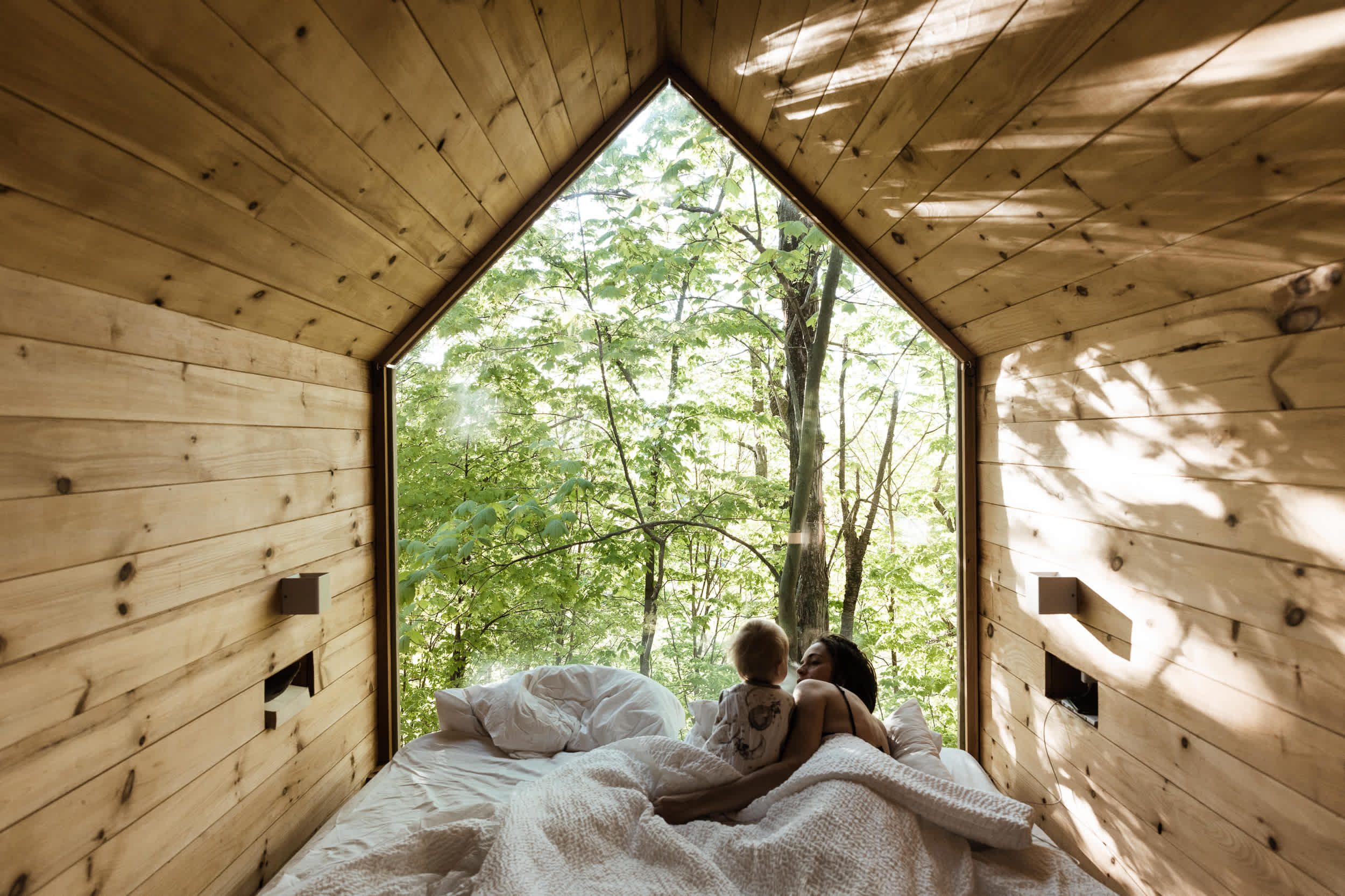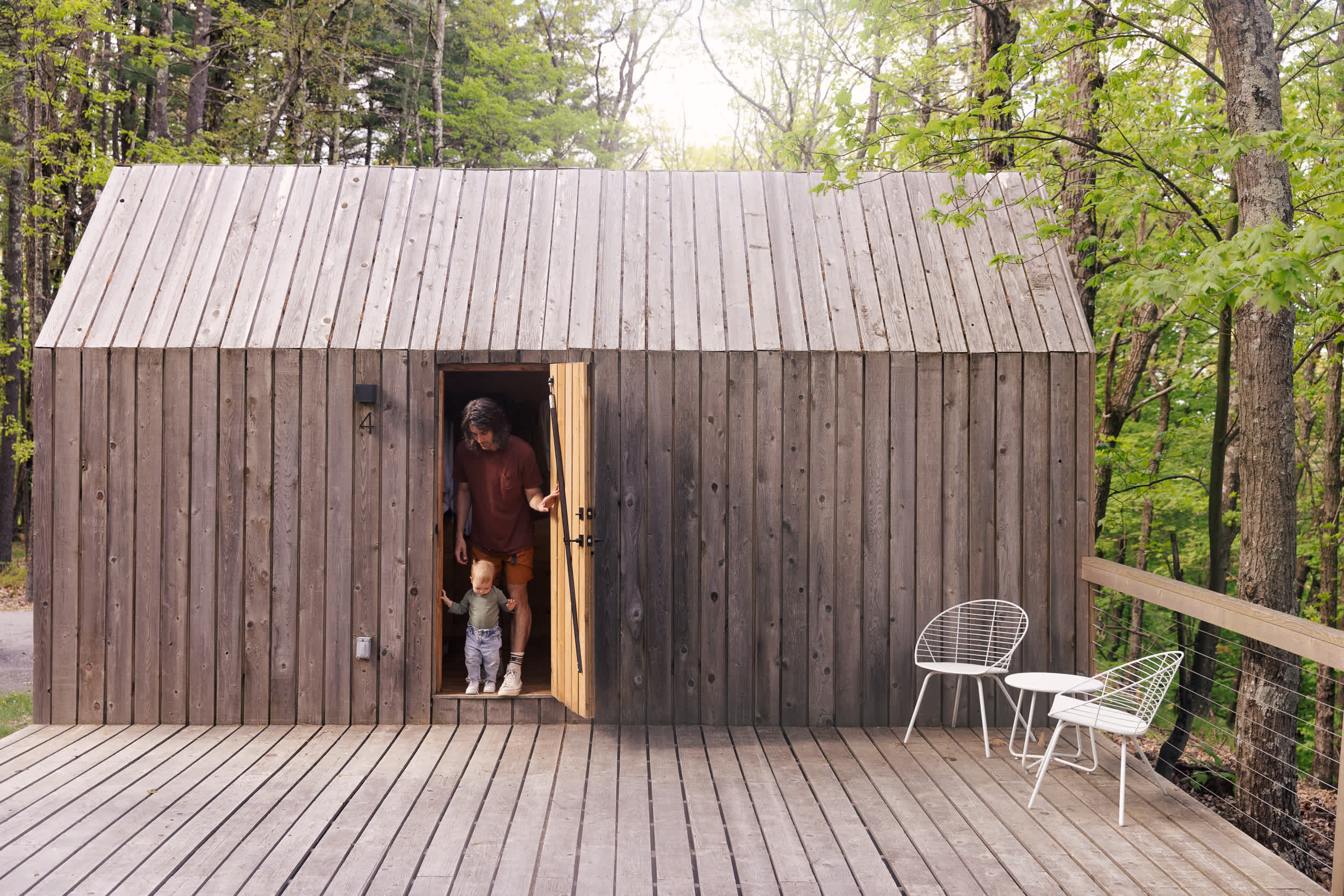 All the comforts of a hotel room, in the middle of the woods. Gather Greene cabins are thoughtfully designed for total privacy and full immersion in nature. Every room features a full en suite bathroom with walk-in rain shower, an unobstructed picture window and outdoor deck, a king bed, under bed luggage storage, heating and air conditioning, mini fridge, closet with full-length mirror, and hair dryer. Enjoy thee tree canopy along the ridge or deer and turkey sightings in the woods! Each cabin has a king bed, picture window wall, heat, air conditioning, full bathroom with walk-shower, and deck with chairs. All cabins come with (super soft!) Brooklinen bed linens and towels, 2Note local organic toiletries, Kuju pour over coffee, and Harney & Sons tea! All guests have access to the grounds — including the shale quarry/pond area, the open air pavilion, the sunset deck in front of the pavilion, and the guest lounge upstairs at the pavilion. Weather permitting, we also invite guests to join for a campfire on Fri / Sat nights! Please note that we are not a campground and do not provide any cooking facilities for guests. There are however, an overwhelming amount of delicious restaurants close by! Check out our guide! We are Gather Greene, primarily a place for private events and nature retreats, but we also open up cabins when available throughout the year. We look forward to welcoming you to our beautiful property!