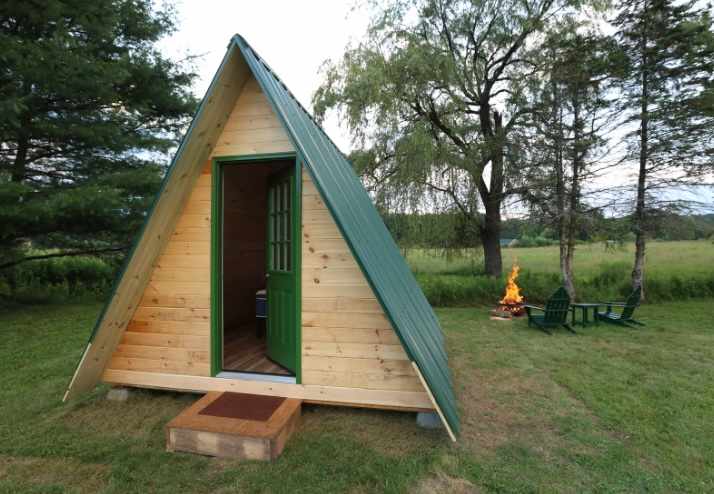 The bathroom and kitchen facilities are close to the main house, a short walk from the A frame. There is a shower. Due to the state of renovations in this space, I prepared food fireside, and had a wilderness wee or used facilities while out in town.