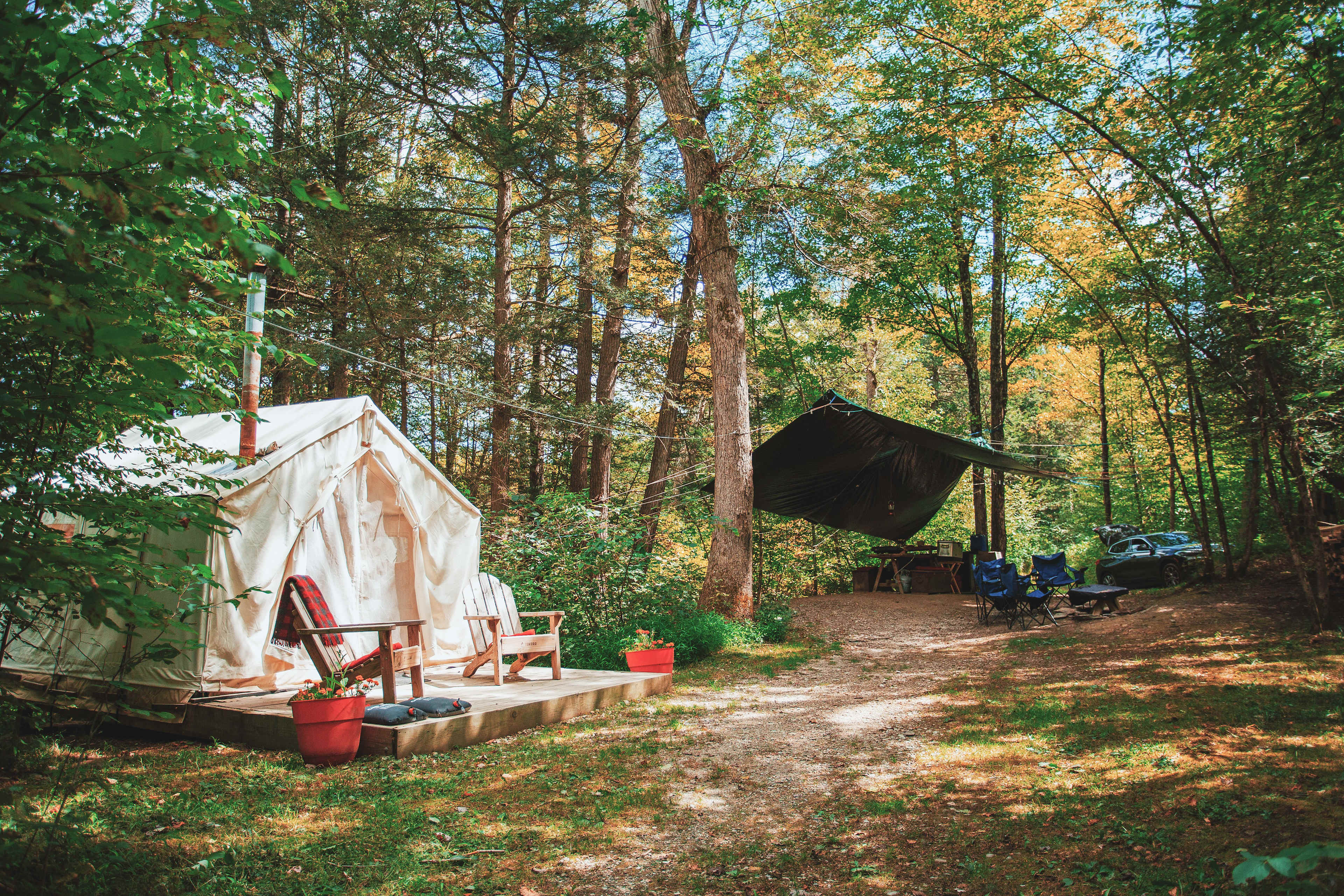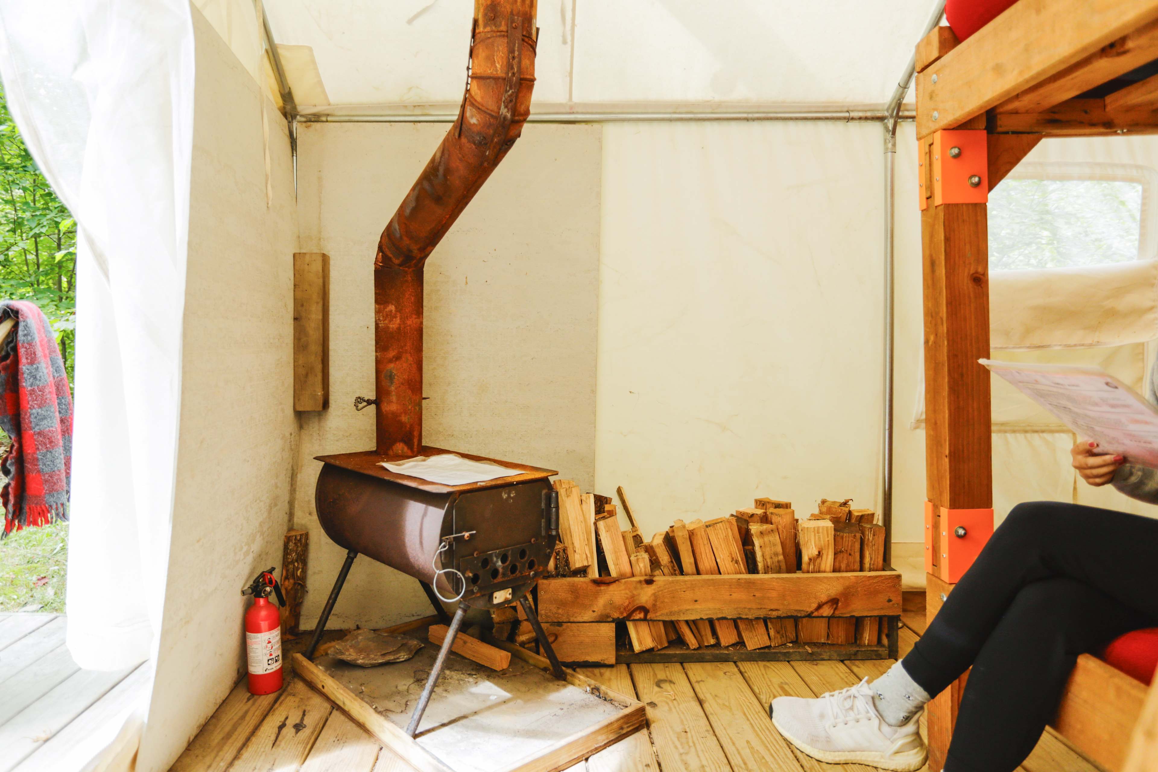 We had an absolutely wonderful stay at Hucklebuck Railway East campsite. While I certainly would not quite call this campsite full on glamping, I would definitely say it that Paula provides all of the essentials to ensure you're comfortable (potable water for washing hands, pots/pans, soap, air mattress, chopped wood, flashlights, extra batteries, several different cooking stoves (charcoal, propane, over fire, etc.), and an outhouse with an eco "toilet" (a toilet seat over a painter's bucket with a compostable bag in it, which 100% gets the job done!). The wood-burning stove in the canvas tent truly saved us when the outdoor temperatures dipped down into the 40s at night. On our final day, the skies opened up and rained a bit...no problem, though, the campsite was mostly covered and none of our items got wet. Truly, this campsite was very well-planned and well-cared for. Paula was very responsive prior to our arrival and was very kind, informative, and welcoming. I would recommend this campsite to all of my friends and family and would certainly stay here again. Thank you, Paula!