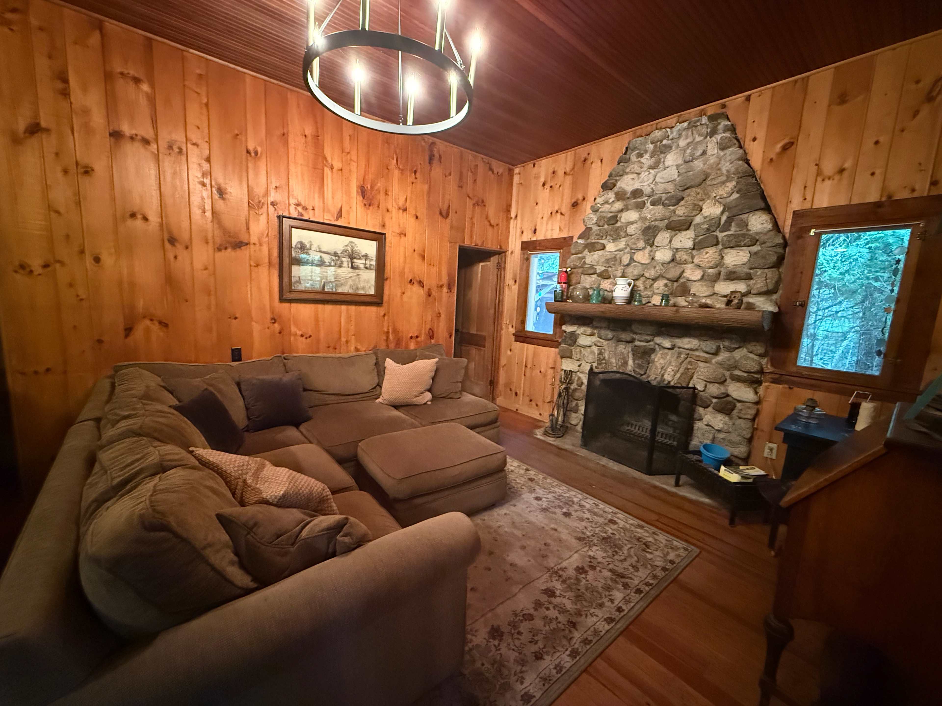 A recently updated quaint Adirondack cabin. Beautifully situated by private beach on Paradox lake. Come enjoy swimming, kayaks, SUPS, canoes, row boats, fire pits, and more. The cabin has a modern open air layout with full amenities, 3 bedrooms, bathroom with washer and dryer, fireplace in living-room, modern kitchen with all new appliances, and beautiful screened in porch.Quiet Adirondack cabin in the woods with a fire place, modern appliances plus old time relaxing charm. A five minute walk to a private beach off paradox lake, perfect for swimming and fishing, paddle boarding, and kayaking. Guests will enjoy 1 acre to themselves on a large quiet property with 4 other cabins surrounding a large field where you can enjoy sky watching or throw a frisbee. The town of Schroon lake and historic Ticonderoga are near by. Including movie theater, star trek museum, revolutionary war landmarks, and local caves.