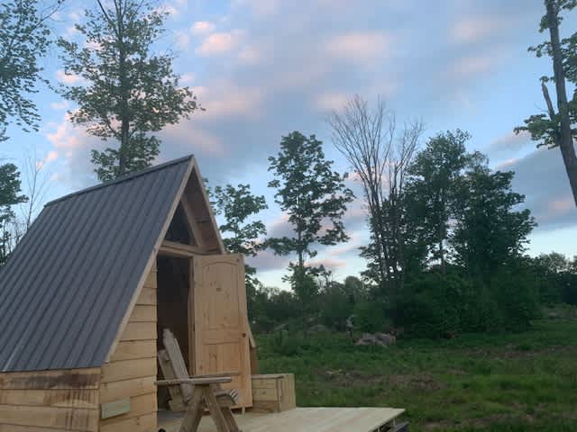 All amenities included of other sites. Outdoor kitchen with gas range, refrigerator, electricity and cold water sink. Access to fire pits, grills. One Outhouse with a toilet and hand wash sink. Hot outdoor private shower. (November - April Water Features may not be running if temperatures are near freezing). Can access/purchase firewood on site 24/7. Pet friendly. There are 4 private tiny houses on the grounds. Each house has one full size bed inside and can snugly accommodate one other full/queen size cot/blow up/matt inside. Welcome to pitch tents anywhere on site. From August - October this is an active apple picking destination so during day time hours on weekends there will be apple pickers on the main orchard depending on season/weather/crop in addition to some weekend early evening evening events.