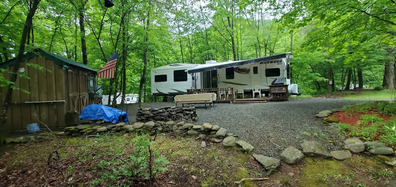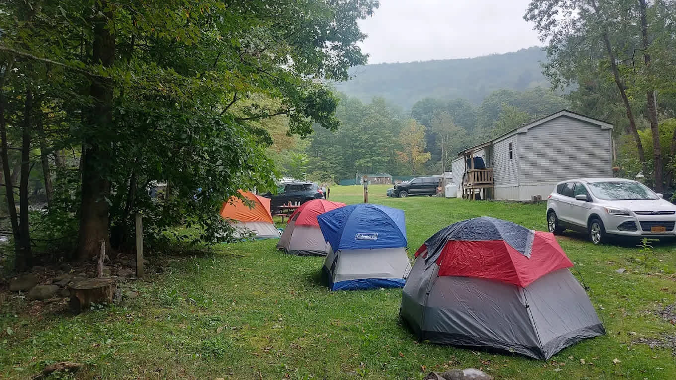 Discover the unique charm of Russell Brook Campsites, where families can immerse themselves in the breathtaking beauty of the Catskill Mountains. Nestled in a secluded valley, this campground is surrounded by 18,000 acres of pristine forest preserve, majestic peaks, and serene freshwater streams. If you yearn for an escape into nature, where you can camp beneath a canopy of stars and breathe in the crisp, clean air, Russell Brook is the perfect destination for your next adventure. Conveniently located just half a mile from the renowned Beaverkill River, our campground offers easy access to some of the best outdoor activities in the region. Whether you're looking to fish, hike, or simply relax by the water, you'll find plenty of opportunities to explore the natural wonders nearby. Plus, we're only 2.5 hours from New York City, 1 hour from Binghamton, and 1 hour from Middletown, making us an ideal getaway for city dwellers. At Russell Brook, we provide a variety of camping options to suit your needs. Enjoy our waterfront and wooded RV sites, all equipped with water, electric hookups, picnic tables, and fire pits. For those seeking a more rustic experience, we offer cozy cabin rentals and secluded waterfront sites exclusively for tent campers. Group camping
