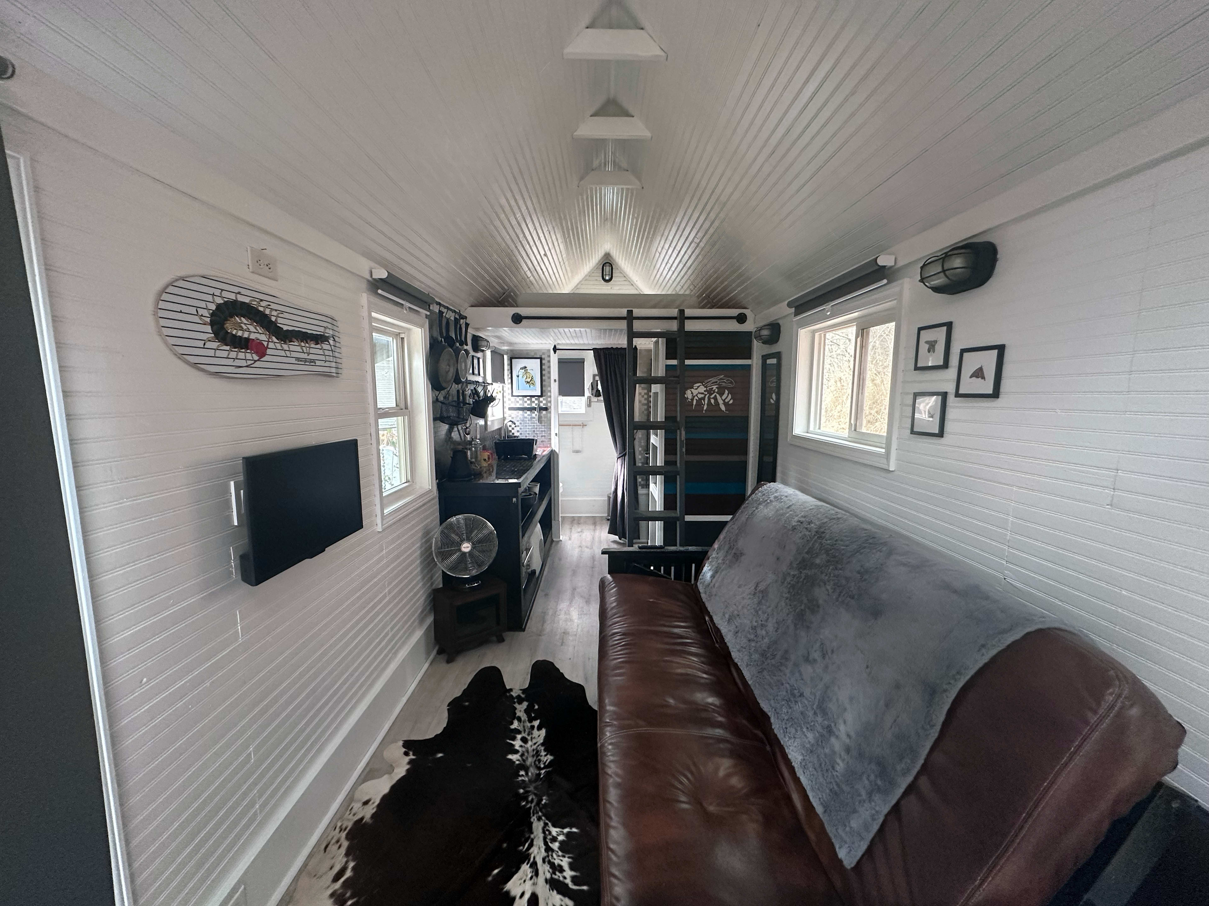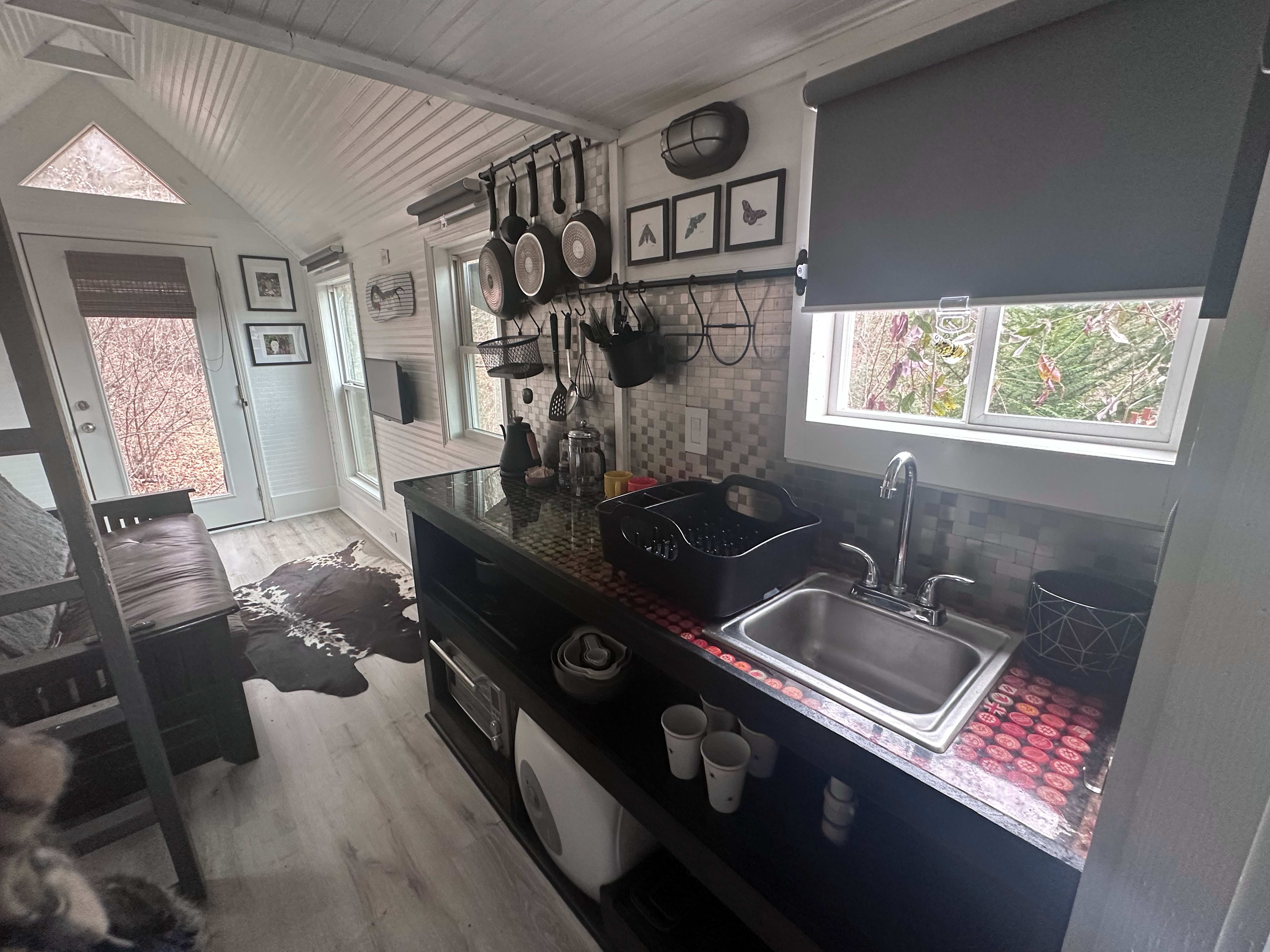 The Bumbleshack tiny house is available for booking! The Bumbleshack Tiny House in Tuckasegee, NC, is a handcrafted tiny house built in 2013 that sits on 8 acres just above a cascading creek that provides soothing, natural white noise year round. Lakes surround us—Lake Glenville is the closest—and we keep kayaks and paddles ready for guest use. On warmer days, grab our river tubes and float the gentle Tuckasegee River and get out at East LaPorte Park to have a picnic. In the evenings, eat under the trees at your outdoor dining table for two and let the creek do the talking. Hike our creekside trail that encircles the property. With 11 windows in a tiny space, this is nature immersion at its best. Inside, the space is thoughtfully outfitted for easy comfort: a double (full) bed in the cozy loft, plus a sofa that opens into another double (full) bed, heat/AC, and a compact kitchenette with both Keurig and drip coffee options using local beans. Tuckasegee, North Carolina: a peaceful mountain valley wrapped in forests, lakes, and the Tuckasegee River—perfect for paddling, fishing, swimming, and leaf-peeping. Lake Glenville—the closest lake—offers scenic coves, waterfalls and calm water. Sylva (nearby): a classic Appalachian small town with a walkable Main Street, indie shops and bookstores, coffee spots, local breweries, and laid-back eateries. It’s your easy stop for groceries, farm-to-table bites, live music and weekend buzz. Cashiers and Highlands are right up NC-107 about 30 minutes away, and the fun of Asheville is just one hour away. Outdoors: covered patio with dining area for two, small propane grill, chairs, string lights, fire pit, creekside trail to explore, creekside sitting area, guide to our favorite hikes, lake put-ins & river floats Pet-friendly: well-behaved pups welcome! Your stay helps us grow a nonprofit orchard that supplies local food banks—thank you for being part of it!Now you can book a stay in the Bumbleshack tiny house, a pioneer of the modern tiny house movement! Parked in her retirement spot perched above a cascading mountain creek with big boulders on 8 1/2 private, heavily forested acres, this is nature immersion at its best. Tube the Tuckasegee River, paddle pristine Lake Glenville and visit the small town charms of nearby Cashiers and Sylva. Plus your stay supports our nonprofit orchard supplying local food banks! Sleep: double (full) loft bed + double (full) pull-out sofa; two people only despite the two beds, and y'all should be real friendly with each other! Kitchenette: mini-fridge, 4 burner cooktop, basic cookware and essentials like oil, vinegar and spices, dishes, Keurig & drip pot with local coffee Comfort: heating/air conditioning, Wi-Fi, television with access to your favorite entertainment apps, NO cell phone service in this area-we use Wi-Fi for communication and that can be spotty at times Outdoors: covered patio with dining area for two, small propane grill, chairs, string lights and your own personal trail that encircles the property along the cascading creek Extras: fire pit with wood, guide to our favorite lake put-ins & river floats and use of our kayaks and river tubes with a signed waiver Pet-friendly: well-behaved pups welcome, must remain on leash on with you at all times due to wildlife activity (bears)