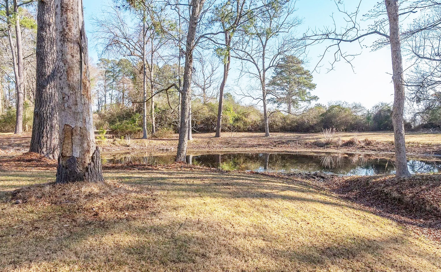 Dry camping on a historic 33-acre farm outside New Bern. Pull your rig down a long gravel driveway lined with trees planted in the 1800s. Park among old-growth pecan, cedar, and oak trees. No hookups—just land, sky, and quiet. A pond sits at the front of the property. Farm fields stretch out behind. Deer pass through at dusk. The 1870s farmhouse anchors the property, but the 33 acres are yours to explore. Five miles from historic downtown New Bern—restaurants, riverfront, supplies—then back to silence. Self-contained rigs only.