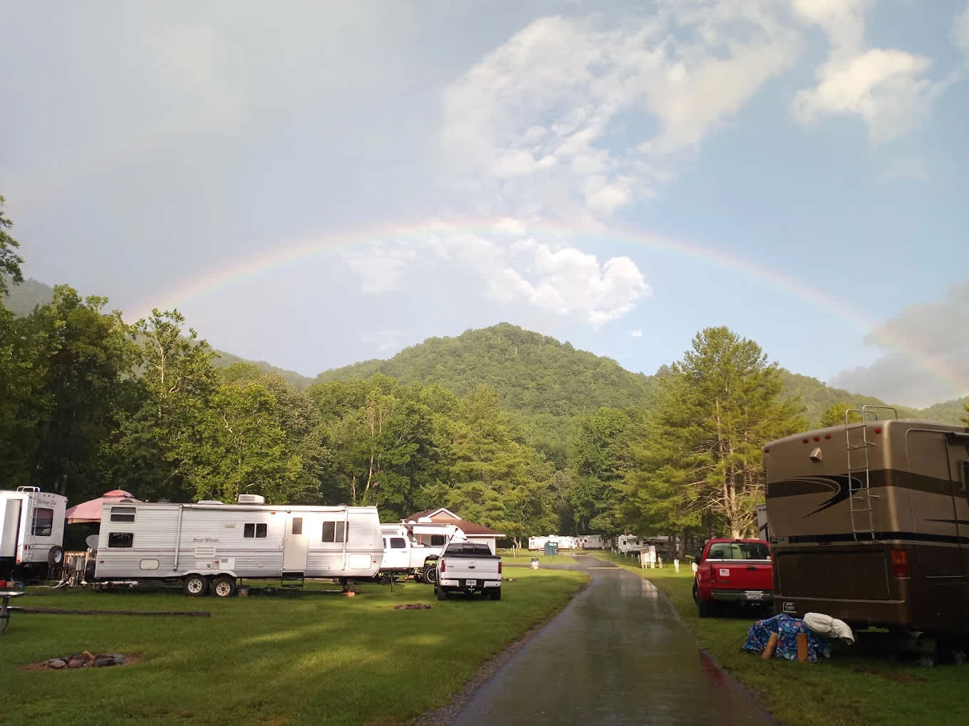 Discover the charm of Happy Holiday RV Village, a unique family-friendly and Native-owned retreat nestled in the breathtaking Great Smoky Mountains. This destination stands out for its commitment to providing a welcoming atmosphere for families, pets, and adventure seekers alike. At Happy Holiday RV Village, you can choose from spacious RV sites, inviting cabins, or traditional tent camping options. Each campsite features a cozy stone hearth, perfect for gathering around after a day of exploration. The serene surroundings include a trout-filled stream that meanders around the island, offering a peaceful backdrop for your outdoor experience. Immerse yourself in nature as you enjoy various outdoor activities, from fishing in the stream to hiking the nearby trails. With the Great Smoky Mountains as your playground, you'll find plenty of opportunities for adventure. After a day of fun, explore local restaurants and shops to complete your experience. Bring your family and your sense of adventure to this beautiful destination, where unforgettable memories await.