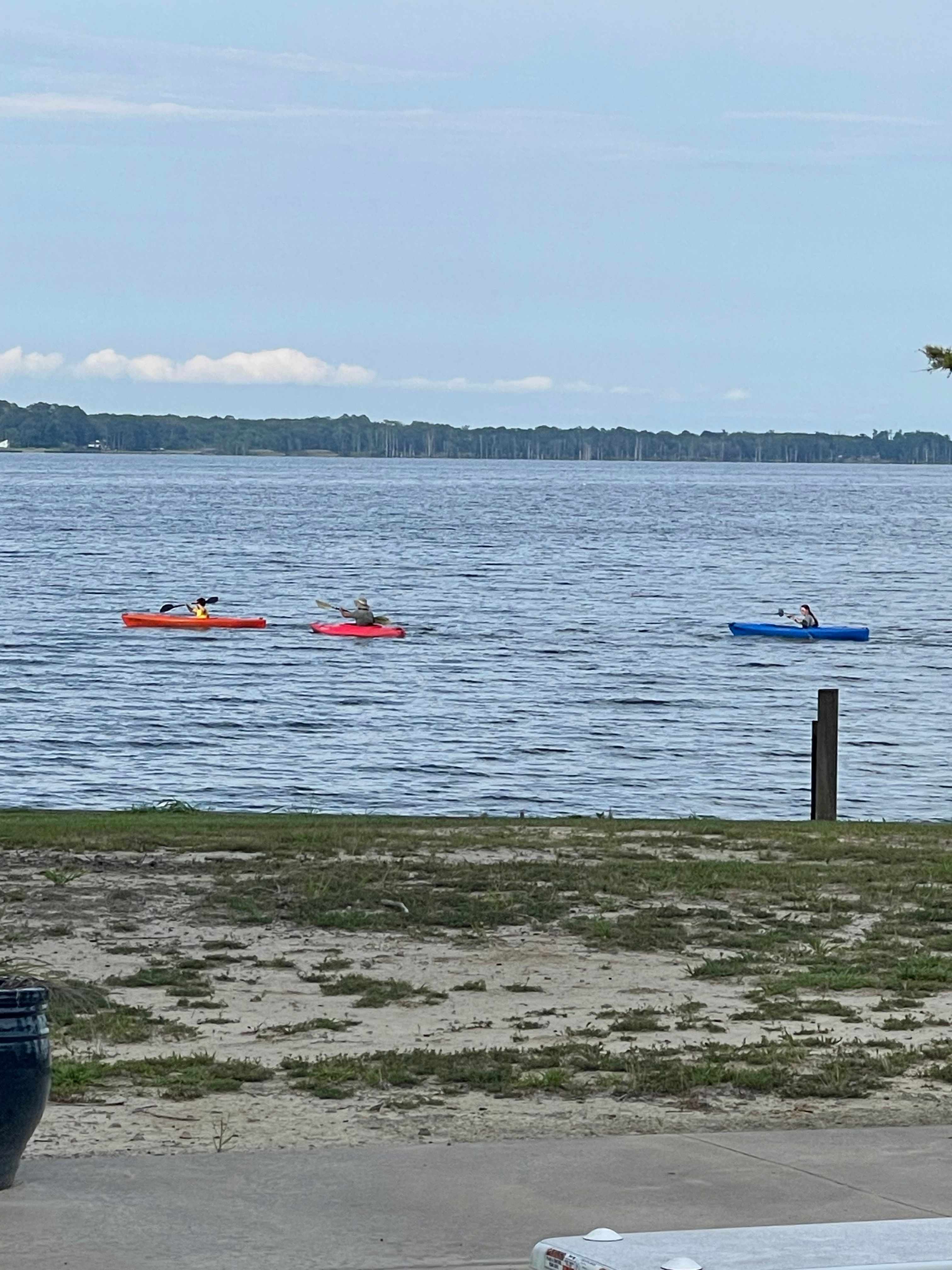 30 amp with water. No blackwater. Sit and relax,fish,swim or kayak. We have a pier if you want to bring your boat(2 ft draft) Private sandy beach. The sunrise should not be missed with fresh coffee.