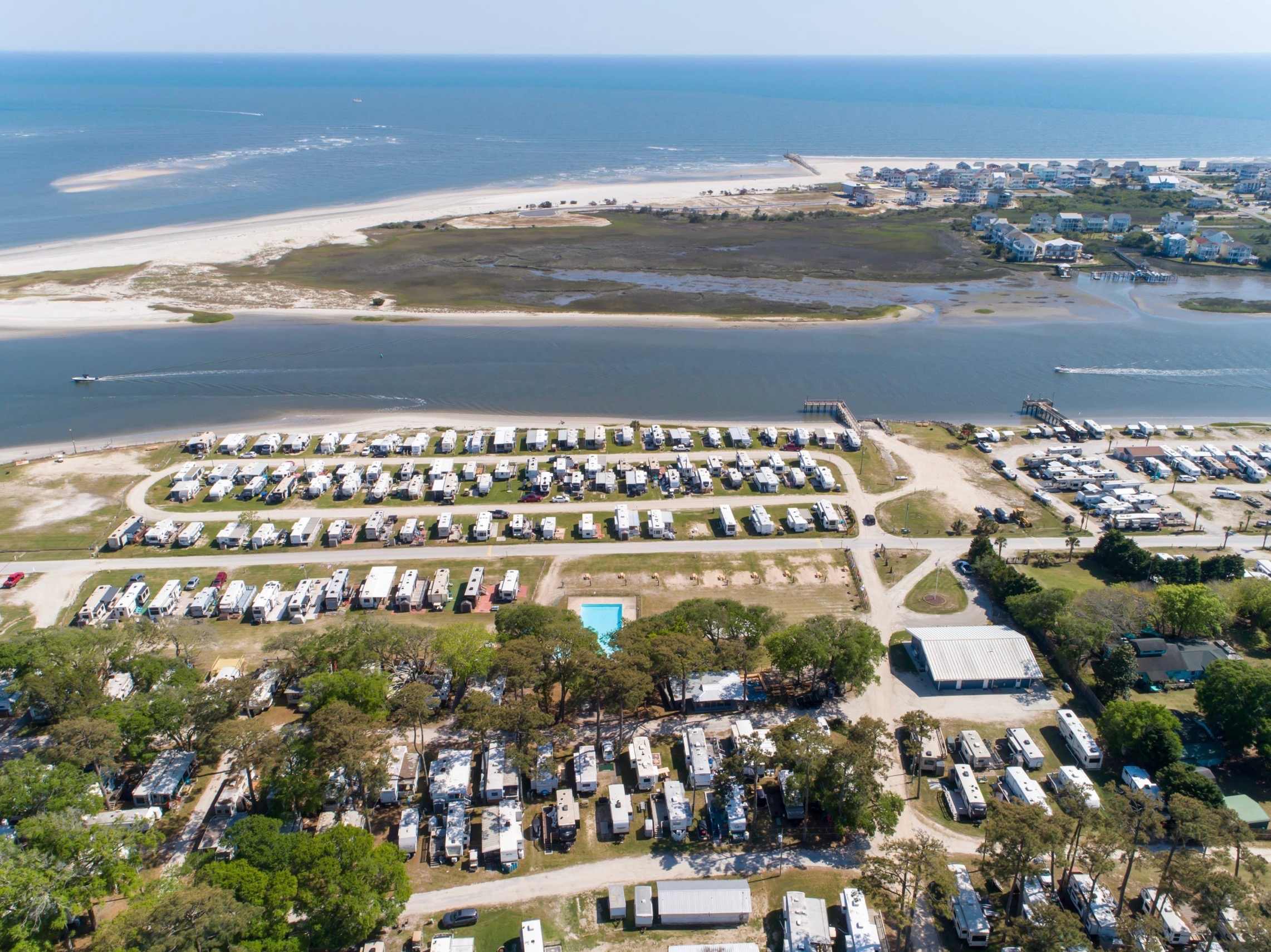 Discover SeaMist, a renowned campground perched on a natural bluff amidst mature oak trees. Enjoy breathtaking views of Holden Beach, Ocean Isle Beach, and the majestic Atlantic Ocean from our beautiful location. Our amenities include boat access to the Intracoastal Waterway and a private beach for relaxing days. Dive into our pristine swimming pool, which is the largest in the area! We provide 30AMP and 50AMP electric service for your comfort, with options for daily, monthly, and long-term rentals available. SeaMist is conveniently located just 45 minutes from Myrtle Beach, SC, and Wilmington, NC. Whether you’re planning a weekend getaway or a lifetime retreat, SeaMist Campground is your ultimate vacation destination on the Southern North Carolina Coast. Explore our range of services, amenities, and stunning surroundings, and contact us today for more information!